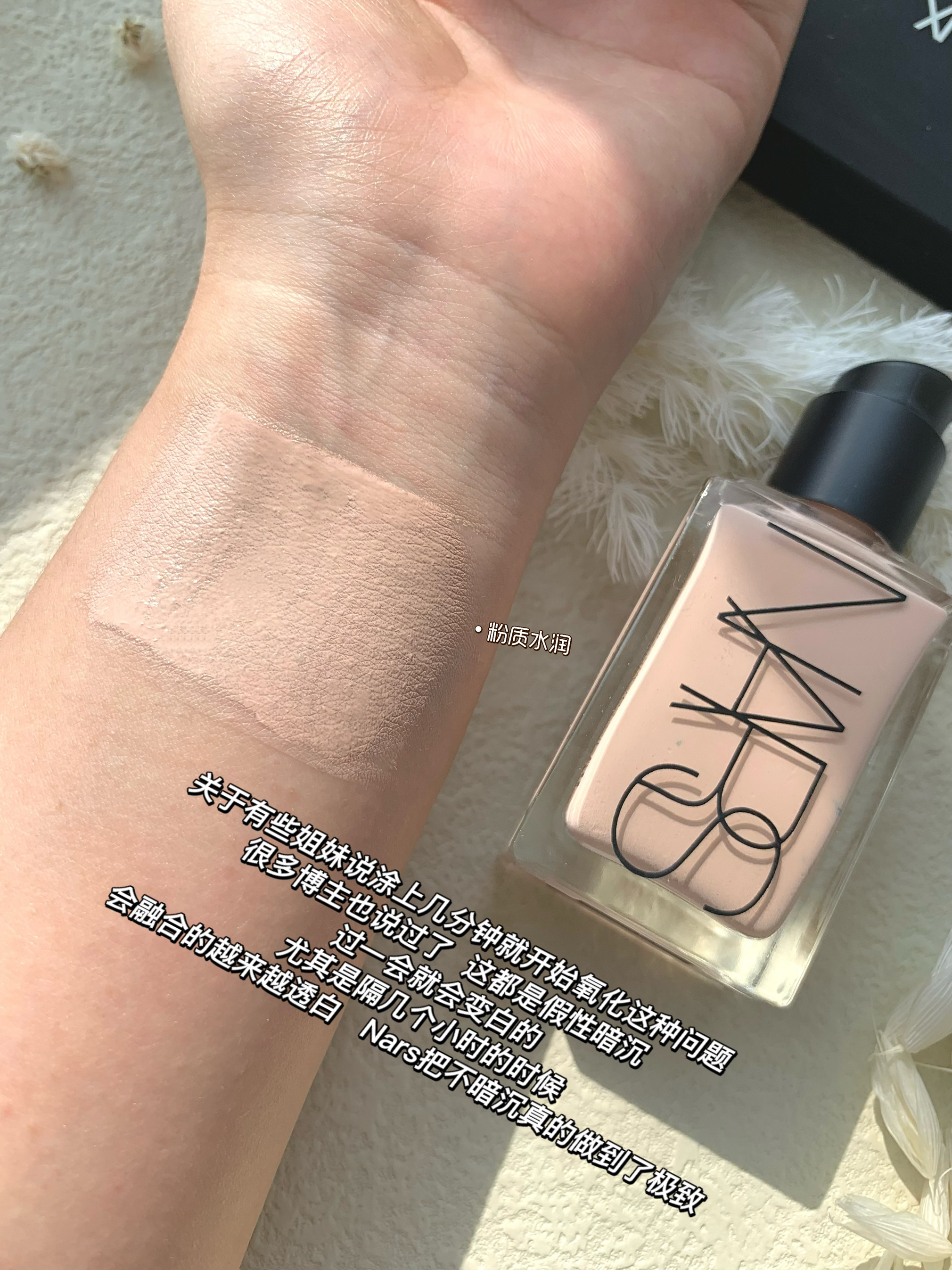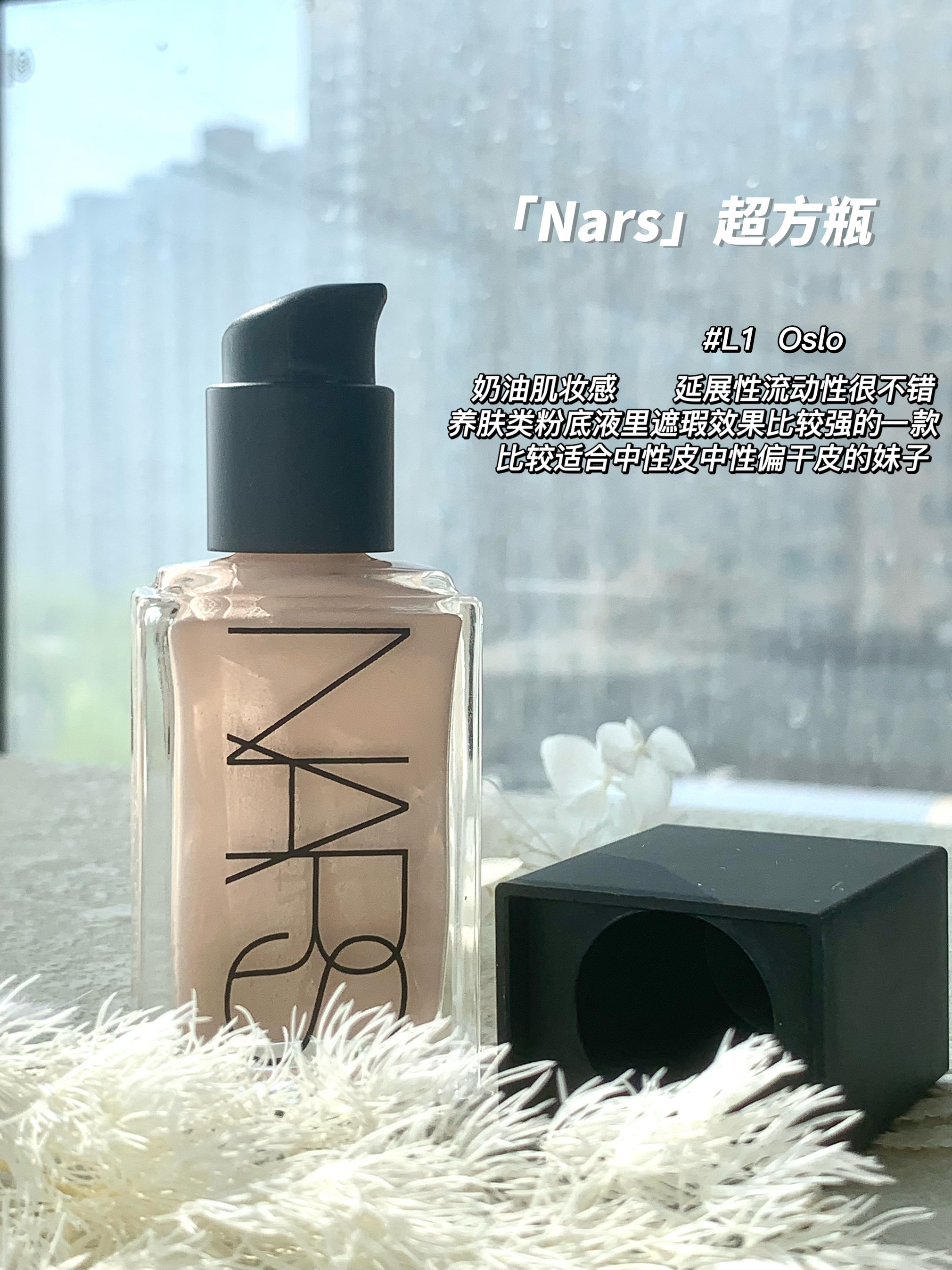 ·本人肤质 坐标北京 大干皮的痘痘肌局部泛红 ·今日分享Nars超方瓶粉底液 最近很火的一款 色号L1 oslo粉调一白 (本人喜欢偏粉调粉底) 冷白皮选择粉调 黄白皮就选黄调的 把手放在日光下血管偏绿就是黄皮 发蓝就是冷白皮 · 遮瑕程度中等吧 感觉一般这种养肤类的粉底 遮瑕通常一般 但是粉质细腻柔滑 水感质地 很容易推开 流动性也特别...