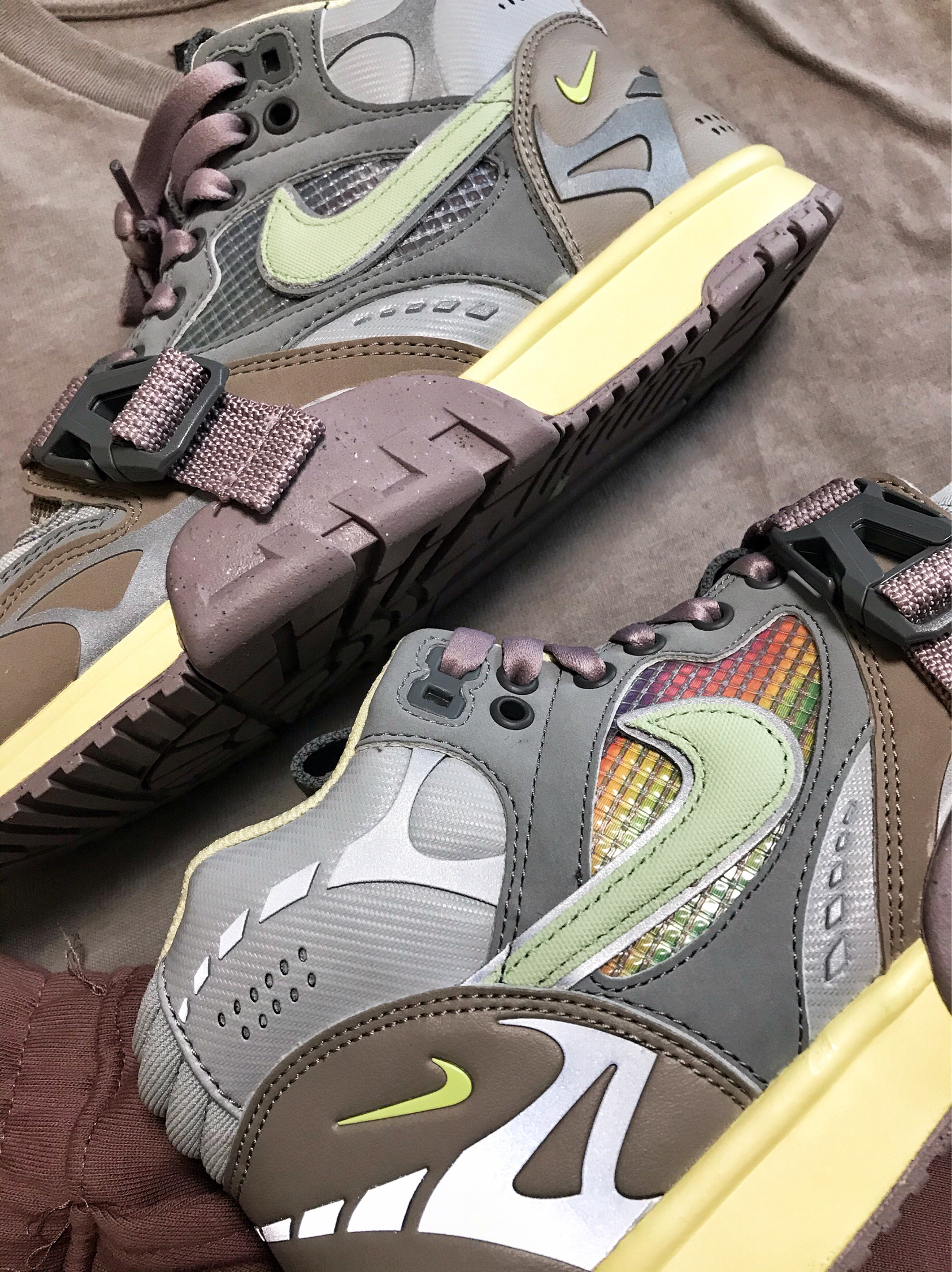 这双Nike air Trainer 1训练鞋的OG鞋款首次发售是在1987年,由耐克著名球鞋设计师Tinker Hatfield设计堪称经典训练鞋。👟 这次Nike将Trainer1重新设计,保留前脚面的固定带是对元年设计的致敬,鞋子整体由多种高级灰颜色搭配组成,鞋身材质也是比较丰富的,尼龙、皮革、3M反光材料、变色龙炫彩材料……鞋子本体细节和质感特别丰富,是一款让人爱不释手的好鞋,顺便说一下,...