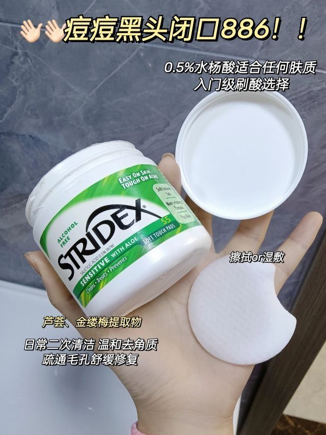 本篇笔记关联了STRIDEX/施颜适 水杨酸清洁棉片 水油平衡去黑头去闭口粉刺舒缓控油祛痘刷酸祛痘印清洁毛孔去角质 绿色温和型0.5%等商品,为用户提供真实的使用体验和购买参考。