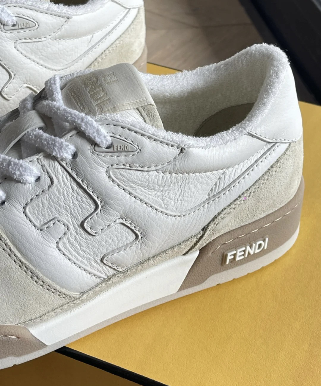本篇笔记关联了FENDI/芬迪 Match 板鞋 舒适减震耐磨圆头牛皮绒面复古百搭时尚运动 白色/黄色等商品,为用户提供真实的使用体验和购买参考。