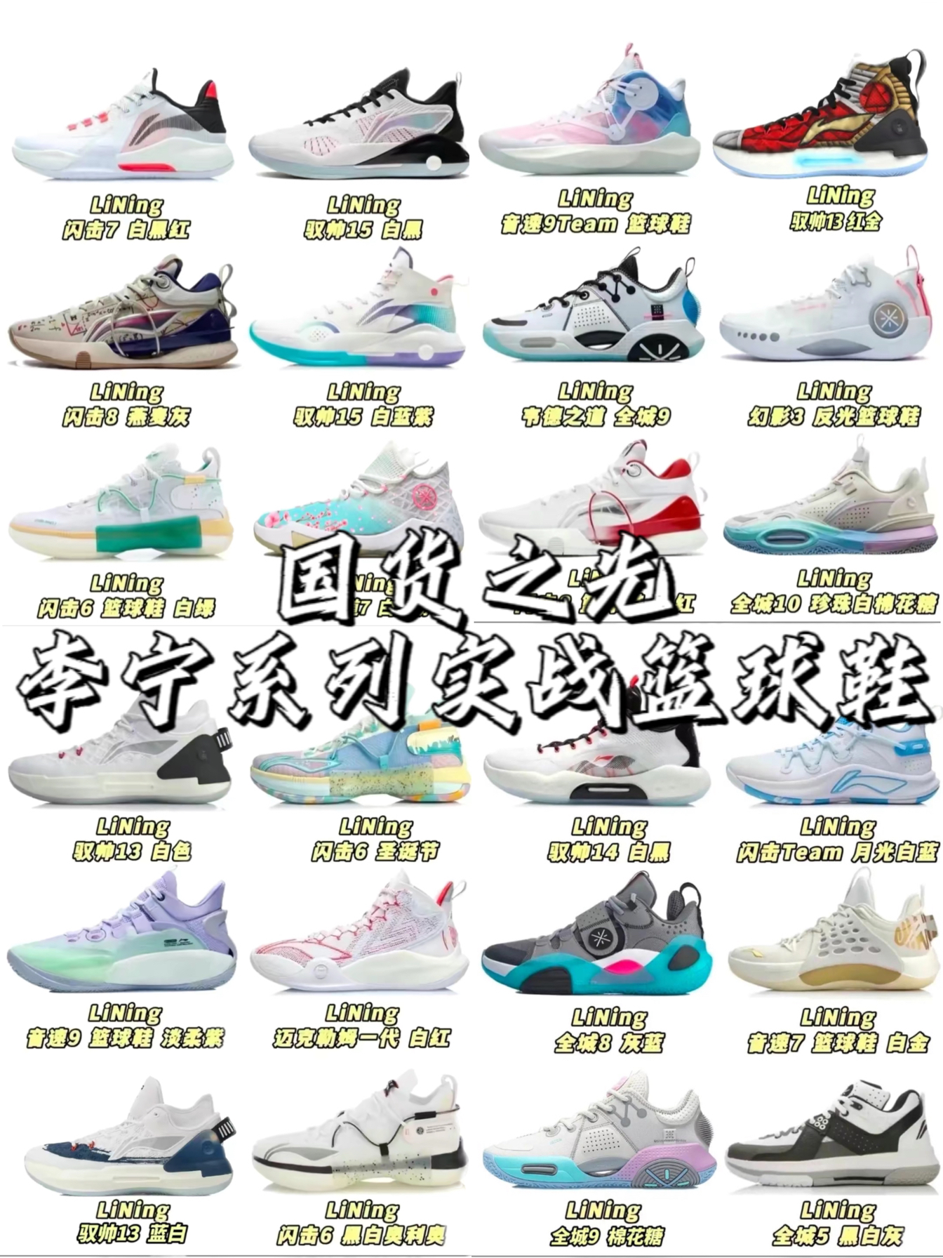 哈喽哈喽哈喽大家好! 这一期给兄弟们分享24双可以无脑冲的篮球鞋! 建议点赞收藏起来,避免要买的时候找不到了哦! 1⃣️李宁的全城5、全城9、闪击8、闪击6,这些都 是超级热门的款式,销量超高,也说明了口碑,闭 着眼睛入手都可以。 2⃣️安踏的狂潮、水花、水泥泡泡 都是性价比非常 高的篮球鞋,而且品控不错,最重要的是安踏的水 泥克星外底,妥妥的学生党最爱。 3⃣️361°的AG凌空,匹克闪现1,价...