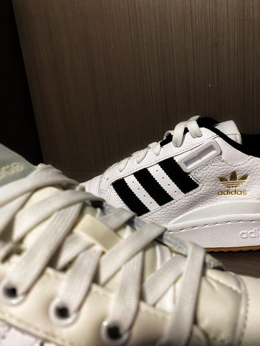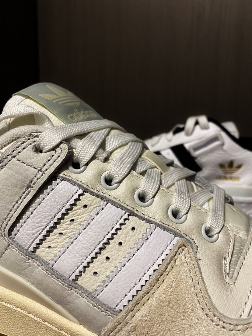 Adidas Forum系列是越来越喜欢,复古的造型加上还不错的舒适度,细节做的更是让人感觉质感拉满。 图中两双分别为: Adidas Forum 84 Low ADV 米白色 Adidas Forum Low 珍珠白 虽然名称略有不同,但整体的外形设计还是一摸一样的。 配色和材质上米白色主要应到了米色和反毛皮,嵌印的三叶草也是非常有质感。做旧的配色处理让这个鞋子有年代感也很有味道👍 珍珠白则是全...
