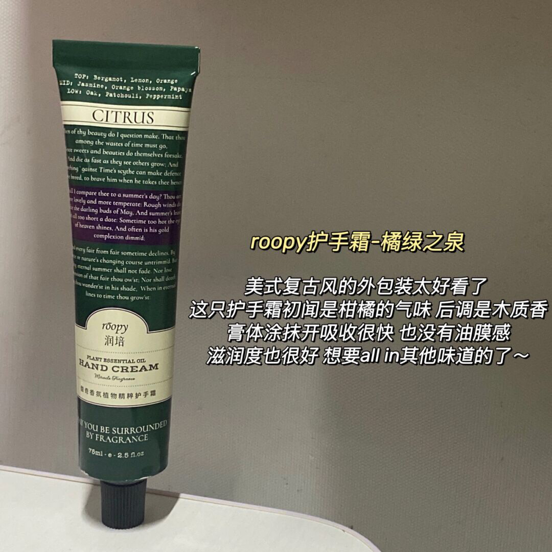 本篇笔记关联了roopy/润培 诗境系列香氛护手霜 秋冬滋润保湿留香 橘绿之泉等商品,为用户提供真实的使用体验和购买参考。