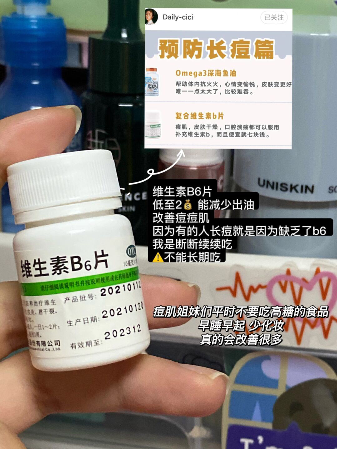 大数据请把我推给油痘肌姐妹! 依旧是跟着@Daily-cici 抄作业 都是些平价好用的好东西 自用无广 分享一下我用这些东西的使用感受 多看少买 ! 仅个人观点 大家理性种草! ◻️绽美娅水乳 ◻️维生素b6片 ◻️阿达帕林凝胶 ◻️肤漾摇摇水 ◻️芙清密钥酸酸管 ◻️澳洲肤润康壬二酸 ◻️雏菊的天空精华油 ◻️兰蔻极光水 跟着dailycici学祛痘 爱用物分享 如何拯救痘痘肌 油痘肌护肤 油...