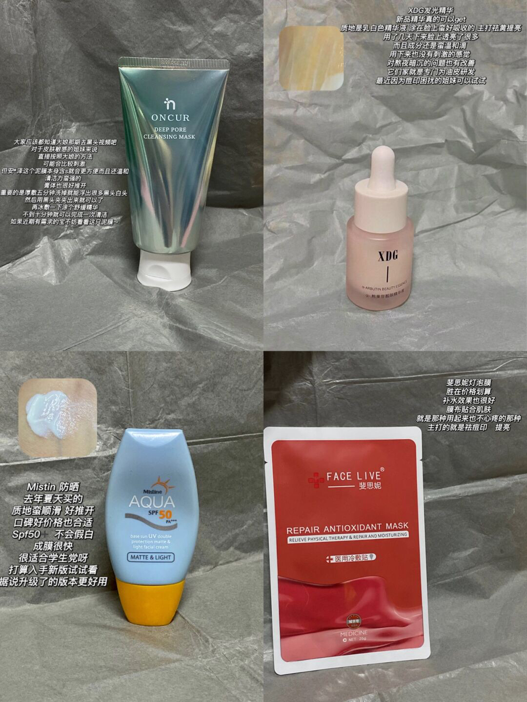 仅个人试用感受 理性种草 🔹安修泽泥膜 🔹xdg发光精华 🔹mistin 防晒 🔹斐思妮灯泡膜 爱用物分享 好物分享 油痘肌护肤 护肤品推荐 安利一个护肤品