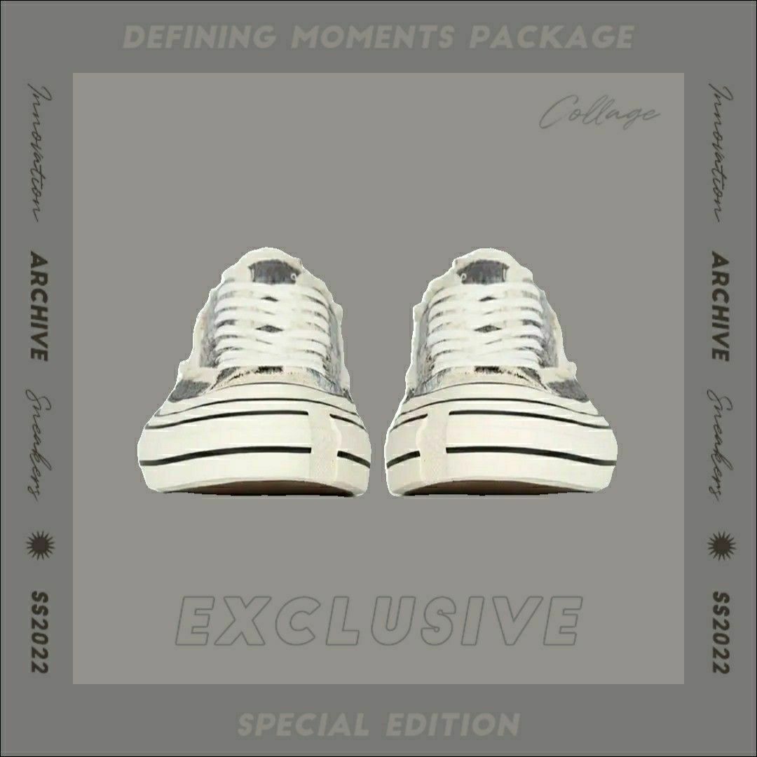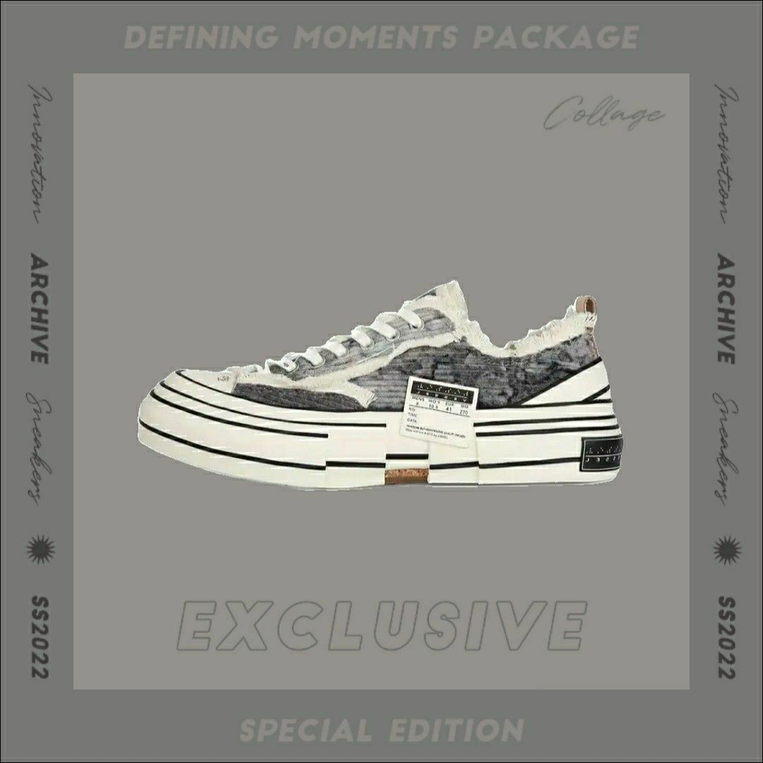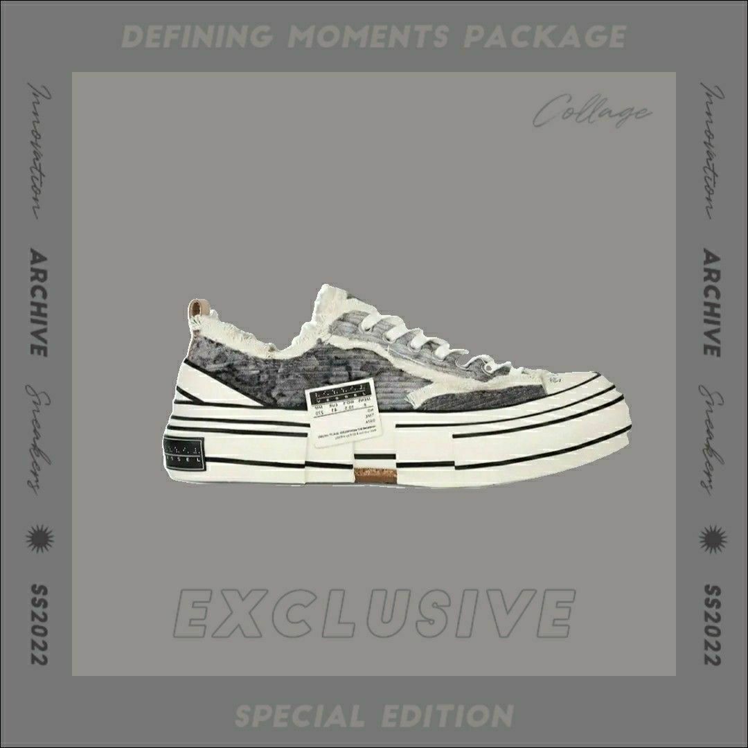 xVESSEL是吴建豪2018年创立的个人潮流品牌。 XVESSEL中的VESSEL意为船或血管,可视为一种载体,是一个传达理想和自我的媒介。 XVESSEL的鞋以帆布鞋为基底,设计手法为将好几双帆布鞋“解构再重组”呈现鞋面错位和多层的中大底,表面帆布的抽须及破坏,解构,重组,做旧加上破坏元素和手绘字体,在鞋类市场中独树一帜,具有极高的辨识度和设计感。 这款硫化鞋采用解构式设计,搭配不规则流...
