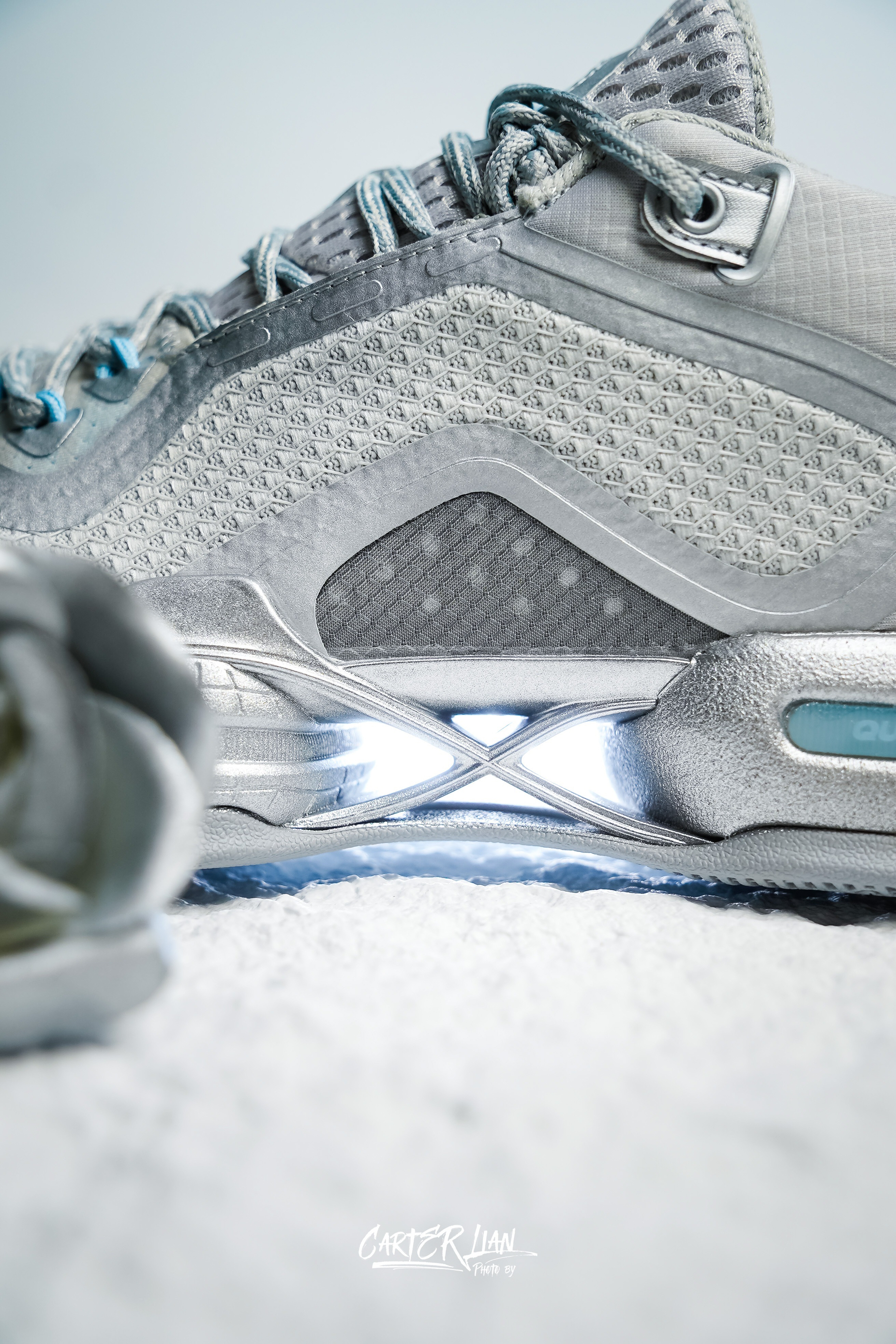 AG2X做为阿隆戈登的签名战靴,配色也不少,像跳跳糖就算比较活泼的配色,但是我最喜欢的配色还是属首发配色里的星舰了。 整体细节👀:整体采用了银灰的配色,特别有未来感高级的配色方案,在中底上刷了一层镀银的颜色,在灯光下效果很不错,就好像汽车烤漆一样的感觉,整体看起来就像宇宙战舰般霸气。 科技配置:前掌ENGR- X缓震系统+后掌QU!KFOAM缓震,同时中间XXKELETON一体式中足系统+BE...