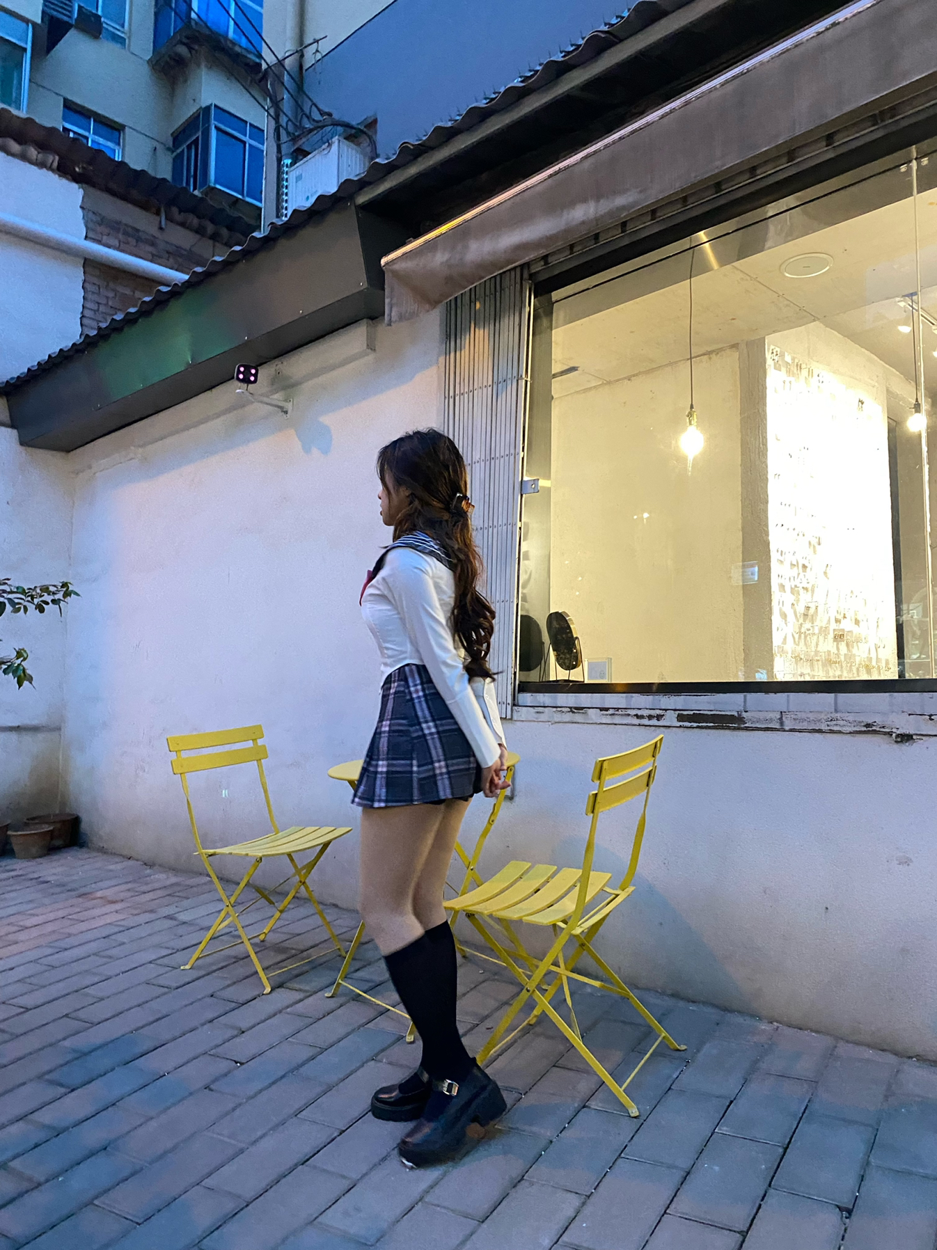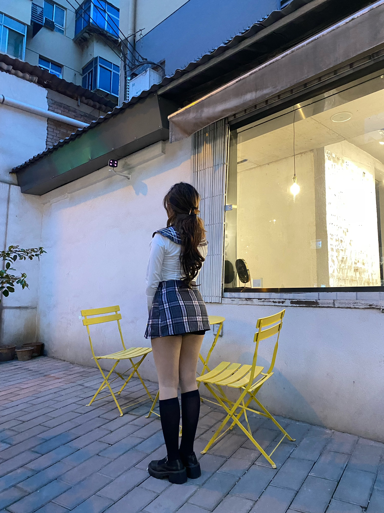 夏季当然要穿小裙裙啦~ 美式风格群搭配长筒袜 显得小腿细 在搭配一双小皮鞋今天也要做一个辣妹