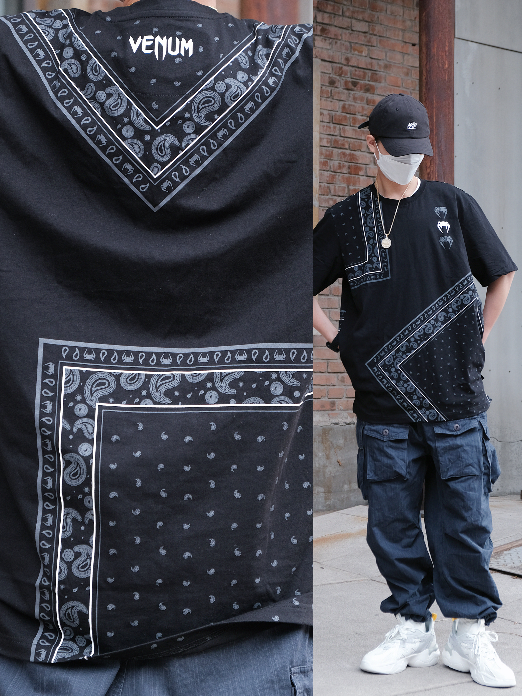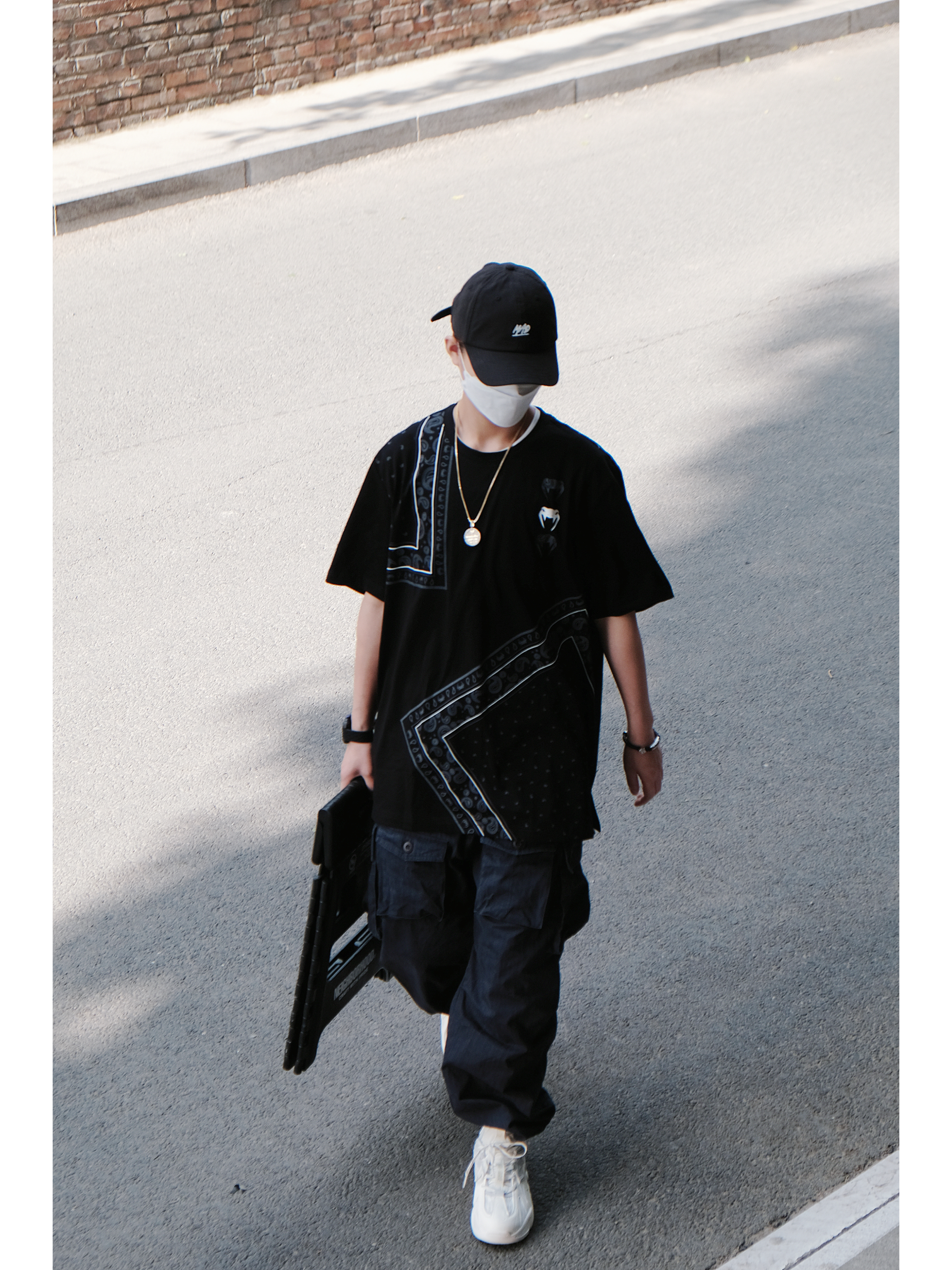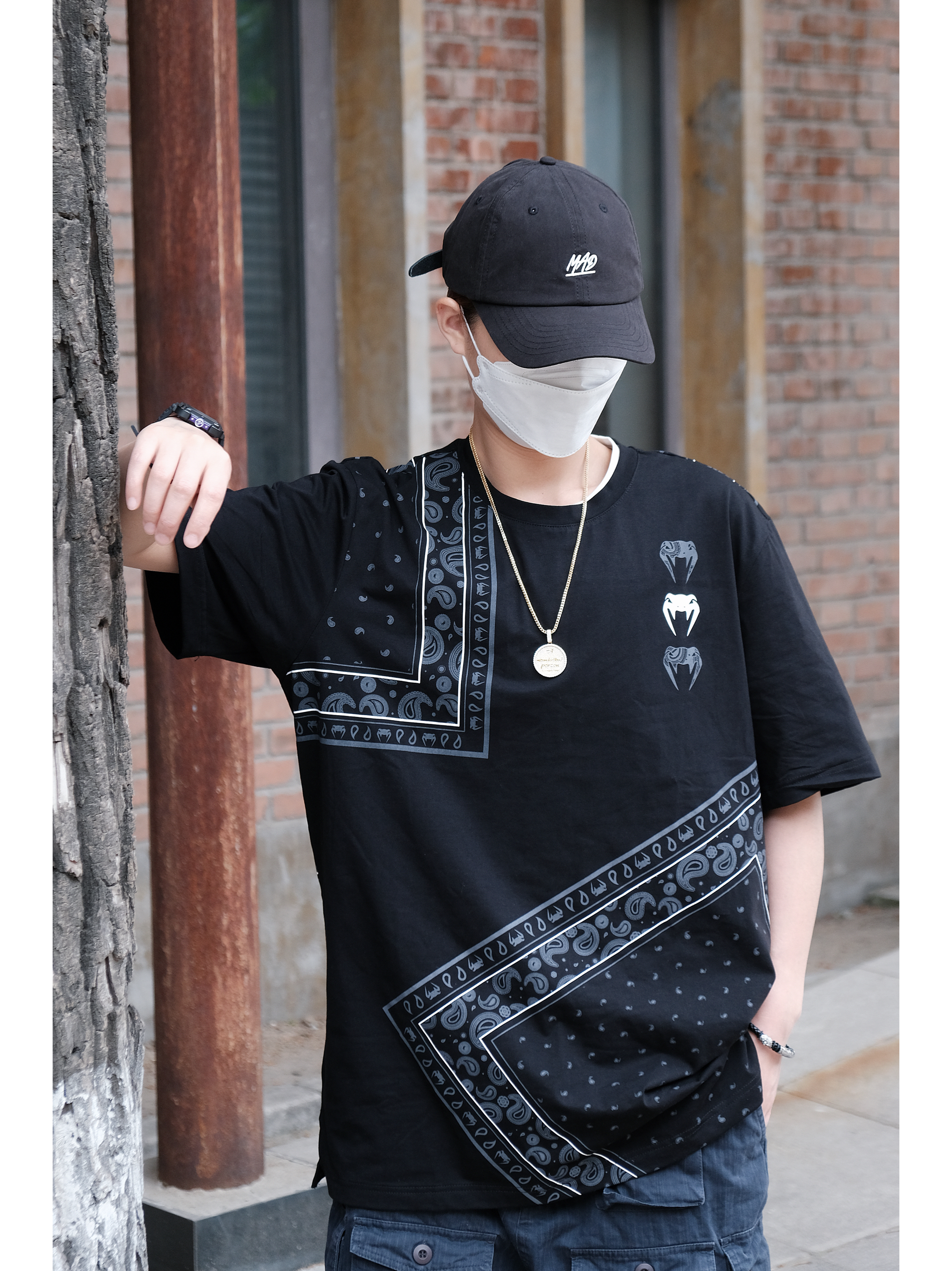📝搭配思路 假期总是快乐的,出游也是最开心的事情,逃离城市是每个人最想的事情,那么出游时穿搭的配色就很关键,我想说当你不知道怎么搭配时黑色系绝对是最稳的。 - 今天的OOTD整体造型在色彩搭配上以黑色系为主,利用其他单品的配色来作为点缀,平衡整体的色彩搭配,互相呼应。 上身黑色腰果花T恤➕金色项链➕黑色弯檐帽,保持同色系,腰果花的设计很有潮流感,金色的长款项链很好的起到色彩点缀作用,其他配饰则...