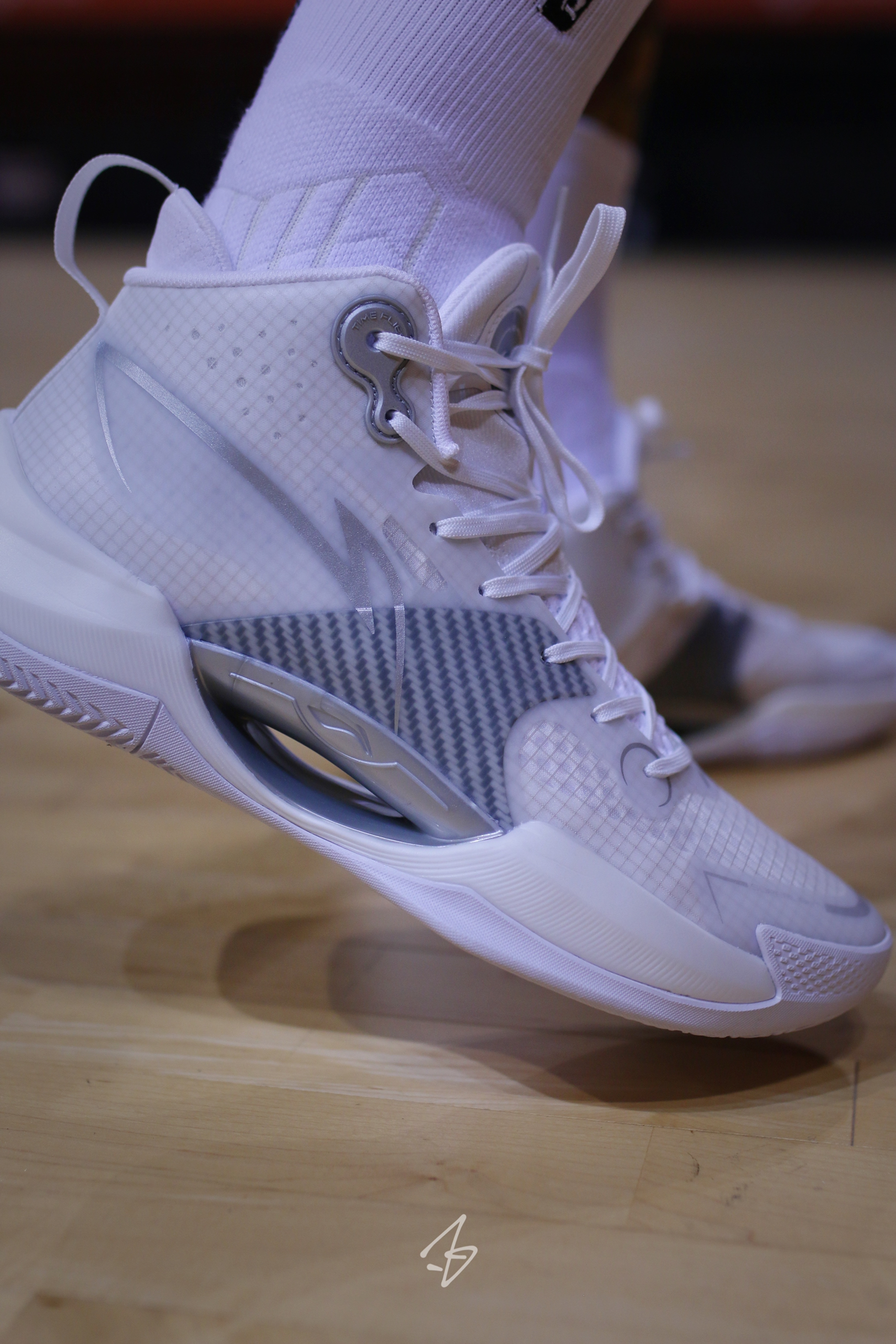 这个鞋子上脚真的帅!侧颜真的太可了! 配置上 1⃣️鞋面热熔材质结合网纱以及这鞋子的卖点之一:碳纤维布。整体的支撑保护还是不错尤其是碳纤维布的侧面这。脚踝的支撑比看图时候好很多,果然球鞋还是得拿到手才知道!另外系带系统 2⃣️缓震是lightfoam框架结合前䨻,lightfoam调教的比较软,前䨻上脚不是很明显,要打几场才有感觉。(lightfoam 穿上有折痕 特别在意需要注意下) 另外前掌重...