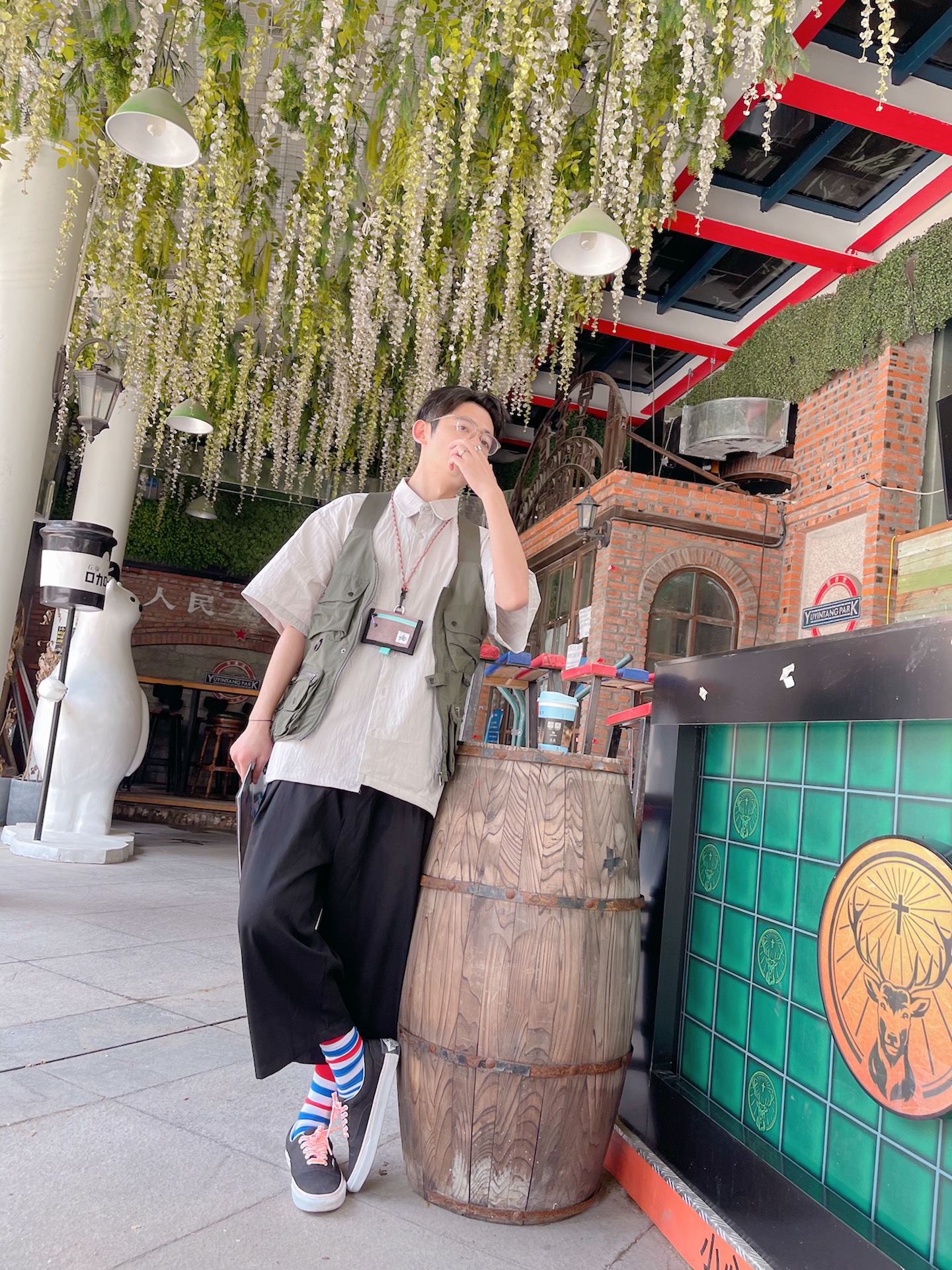夏季偶尔选择叠穿 马甲必不可少 上身的两件叠搭 下身选择简单些 上繁下简单