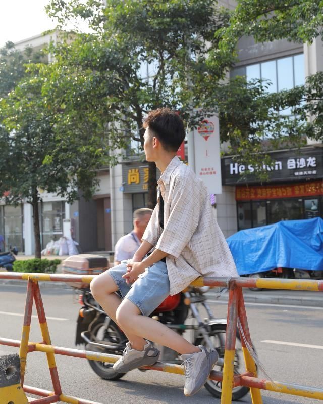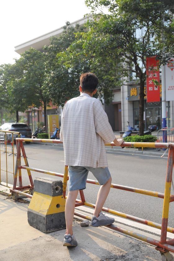 男生夏季日常简约穿搭 牛仔短裤真的是夏天的必备,这带有破洞的,增加了时尚感, 穿个短T,搭配上衬衫做叠穿,很潮又有层次感~经典又好看