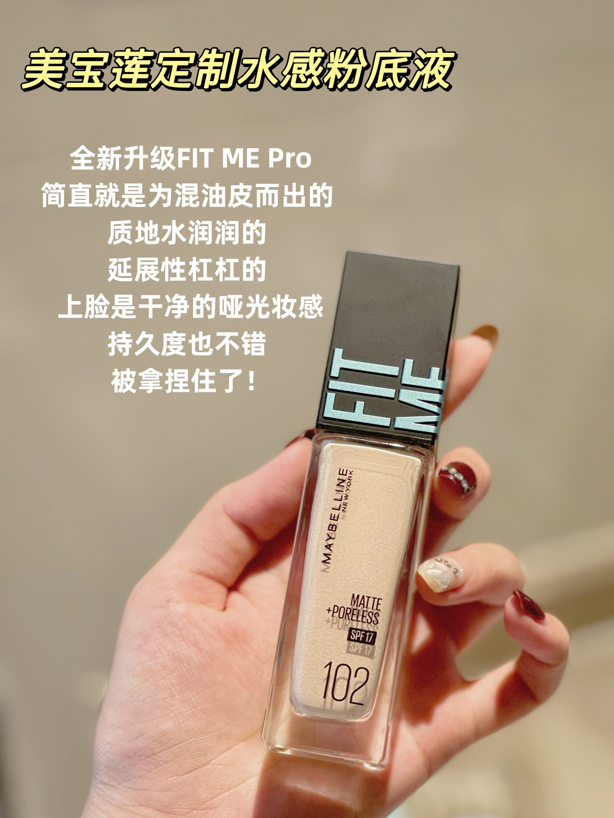 这期粉底液测的都是平价版的 我自用觉得超级无敌好用的 来安利给大家~学生党粉底液 ▪️肤质:混油皮 痘痘肌 瑕疵皮 容易泛红 脸颊容易干燥 需求:控油的同时还要有滋润度 遮瑕度中上 - 🔸美宝莲定制水感粉底液🔸 #102[话题]# 💰89 全新升级FIT ME Pro 简直就是为混油皮而出的 质地水润润的 、延展性杠杠的 上脸是干净的哑光妆感 持久度也不错 被拿捏住了! 这次的新品我爱了! 🔸雅诗...