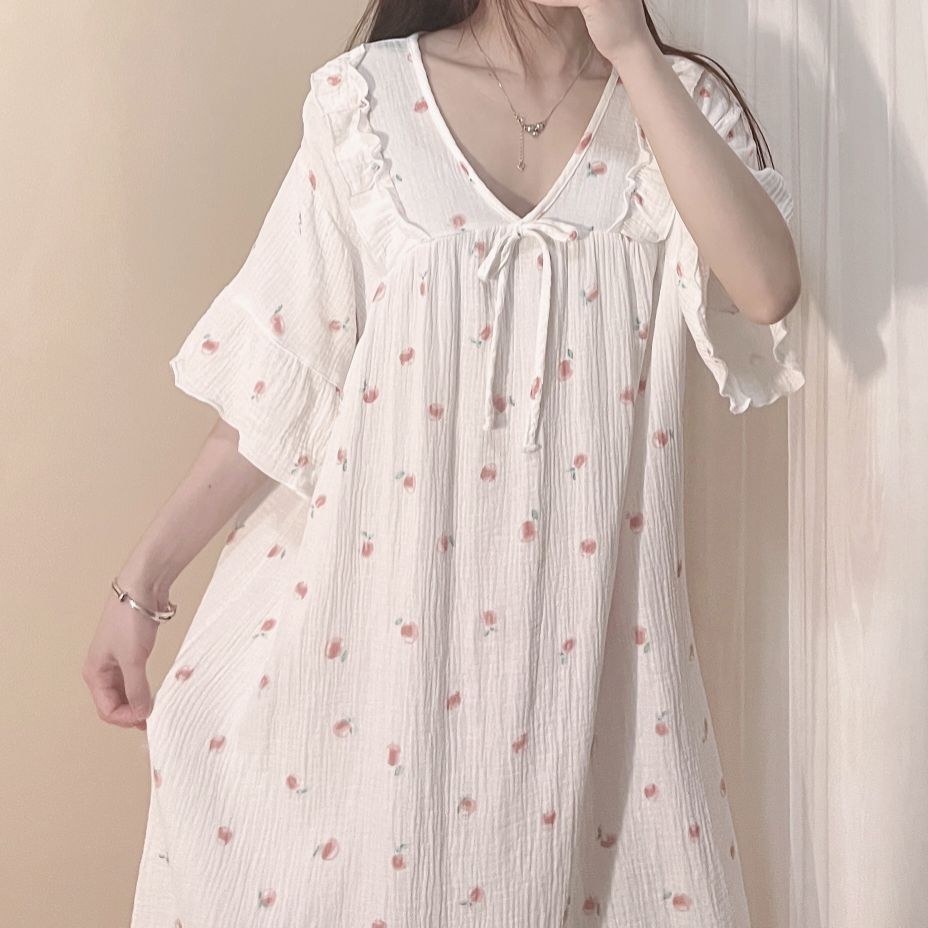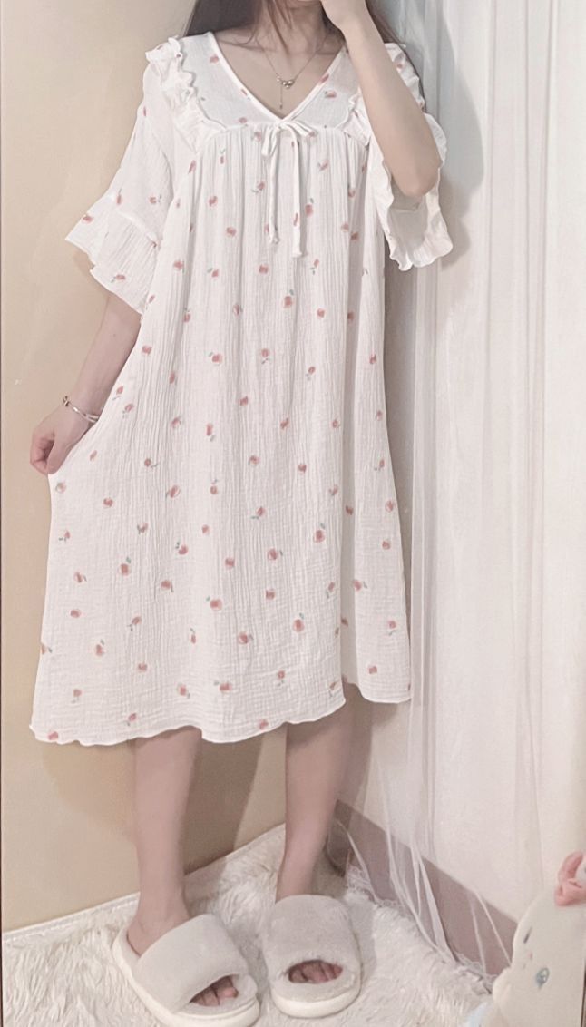 好喜欢这条睡裙上的蜜桃图案喔! 太甜美元气了! 睡裙:the sun睡衣