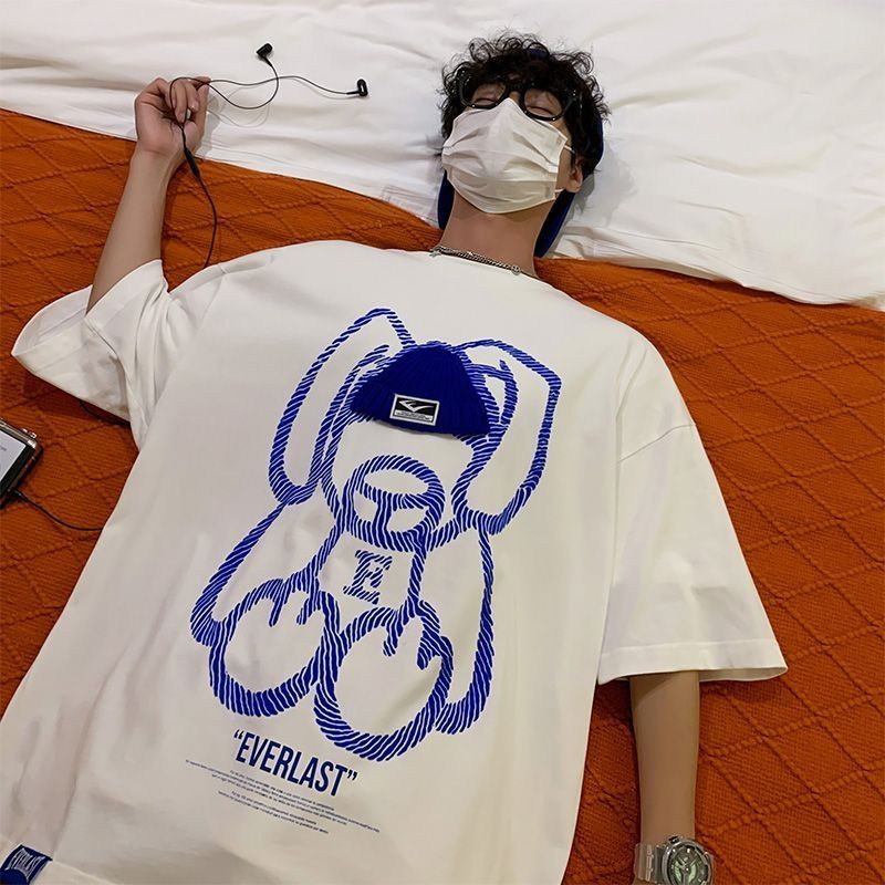 ✌✌✌推荐单品:proteus boy 动物插画休闲短袖 🛒推荐理由: 基础款百搭小白短袖T恤 蓝色线条感勾勒的垂耳狗 最特别的是mini蓝色毛线帽 凸显了趣味立体感 oversize版型 宽松落肩慵懒风 全棉面料 质感触觉就足以惊艳 👉👉👉穿搭tips :白T+亚麻绿休闲裤+小白鞋+🧢