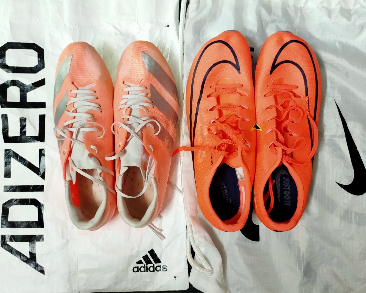 阿迪达斯半掌蝉翼,Adizero Sprintstar,速度之星,体考四项鞋,轻量化做得很棒,就是鞋面强度比s9差点,总体性能比s9更好,快冲!