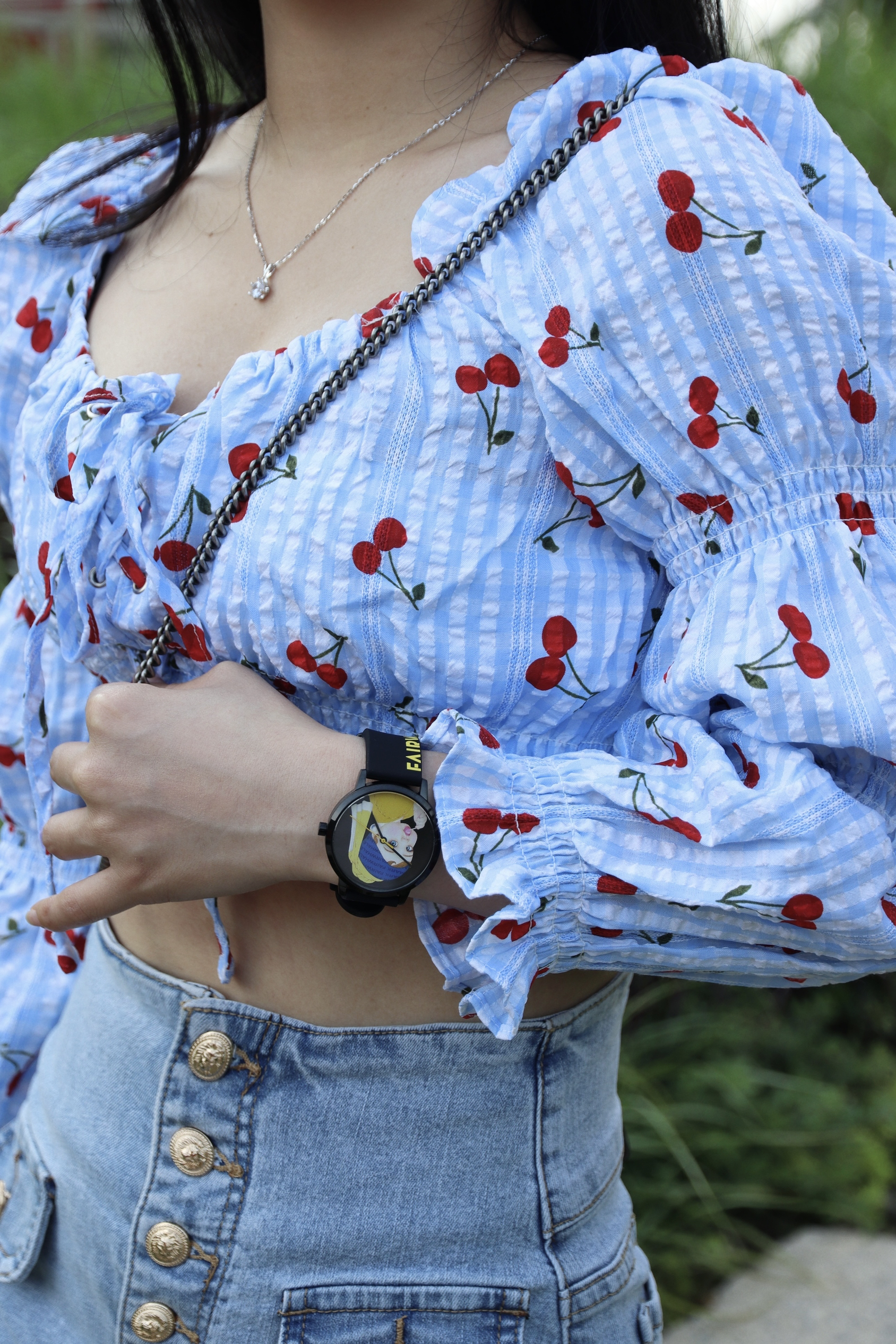 🤍清新的蓝色系给夏季降降火 💙初夏的甜美蓝色系穿搭来噜 🌱郁郁葱葱的草坪 欣欣向荣的夏天 ☀️活力满满的甜辣风开启属于的夏天 ☁️同色系穿搭上的呼应 甜美泡泡袖与热辣夏季的碰撞 🎁520好物分享 ⌚️马克华菲 联名款手表 ✨多元文化的融合 满足时尚个性需求 💙今日穿搭灵感: 泡泡袖➕牛仔裤➕球鞋