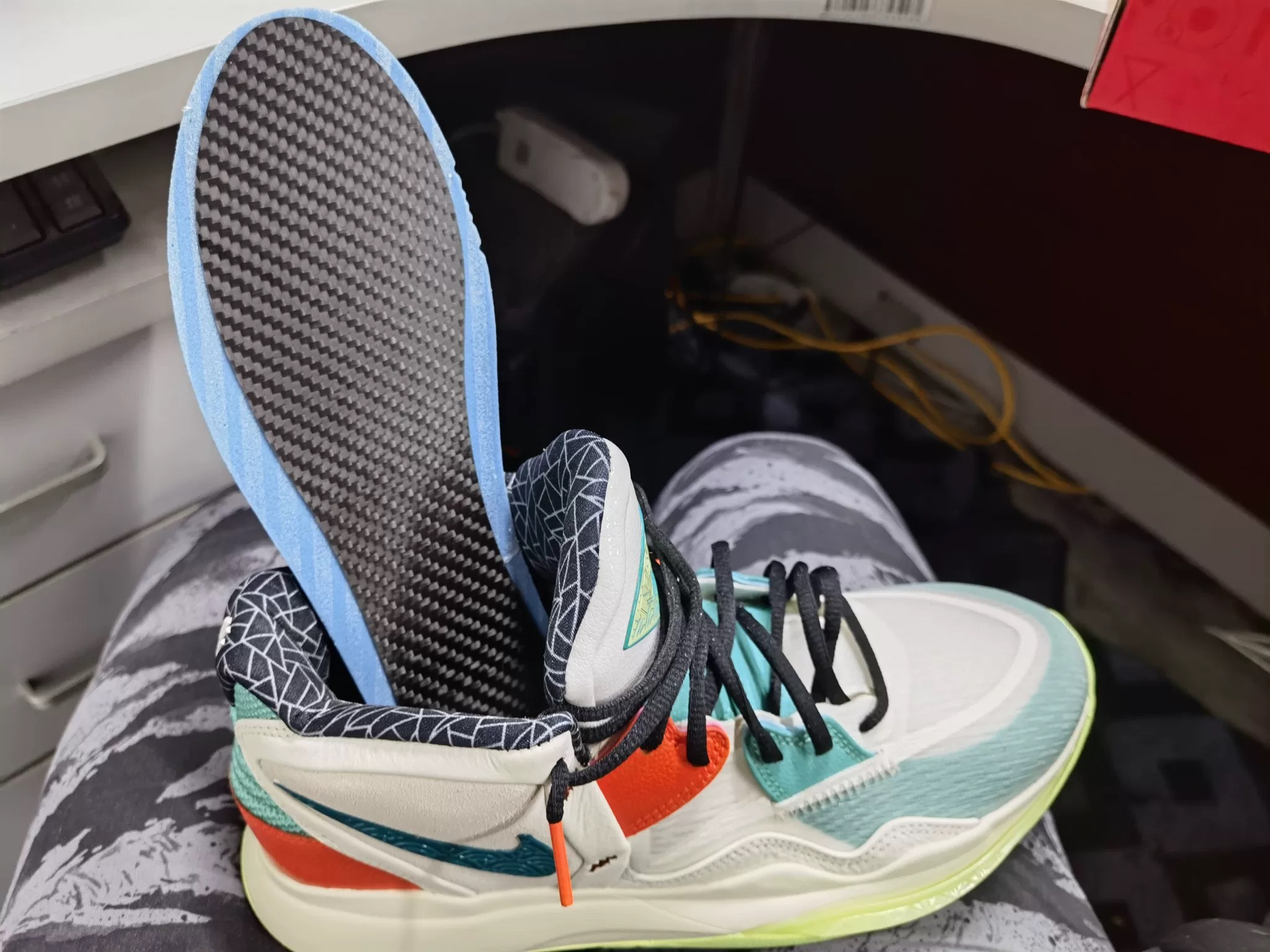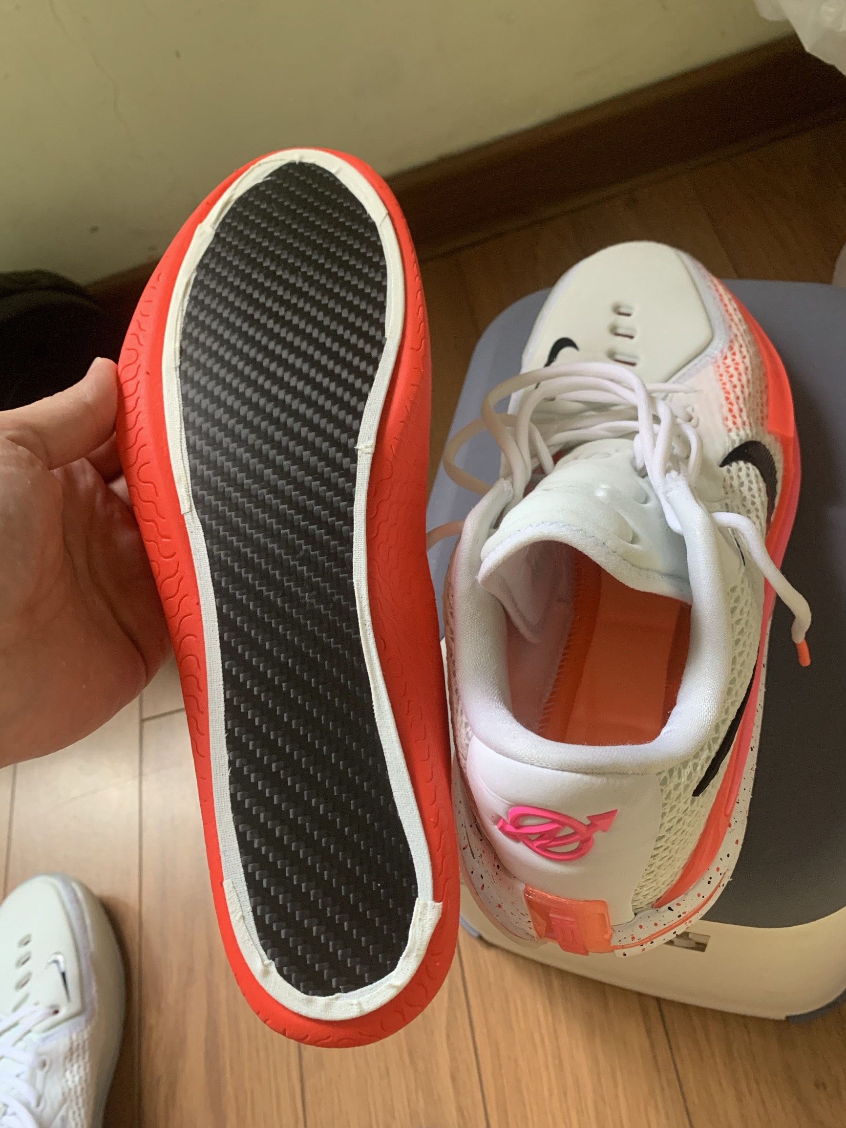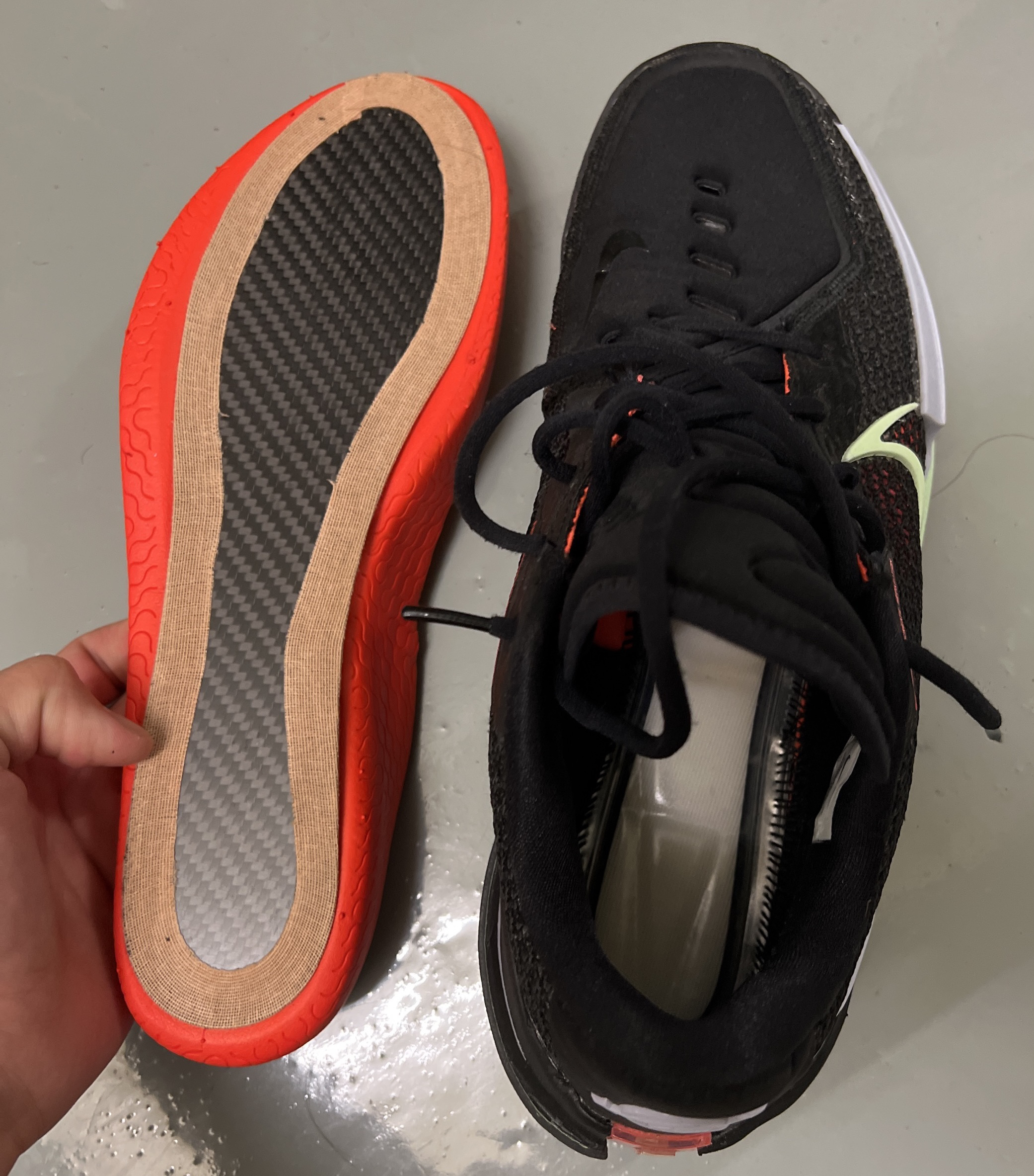 全掌碳板鞋垫可以有效提升篮球鞋抗扭性能,稳定性升级。G.T.Cut太软穿的脚酸,启动泄力…加上全掌碳板,刚好装进鞋垫下边凹槽里,抗扭升级,启动反应加快!