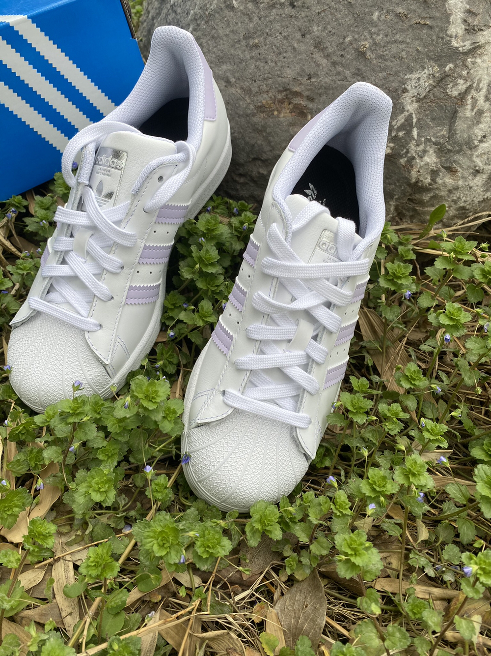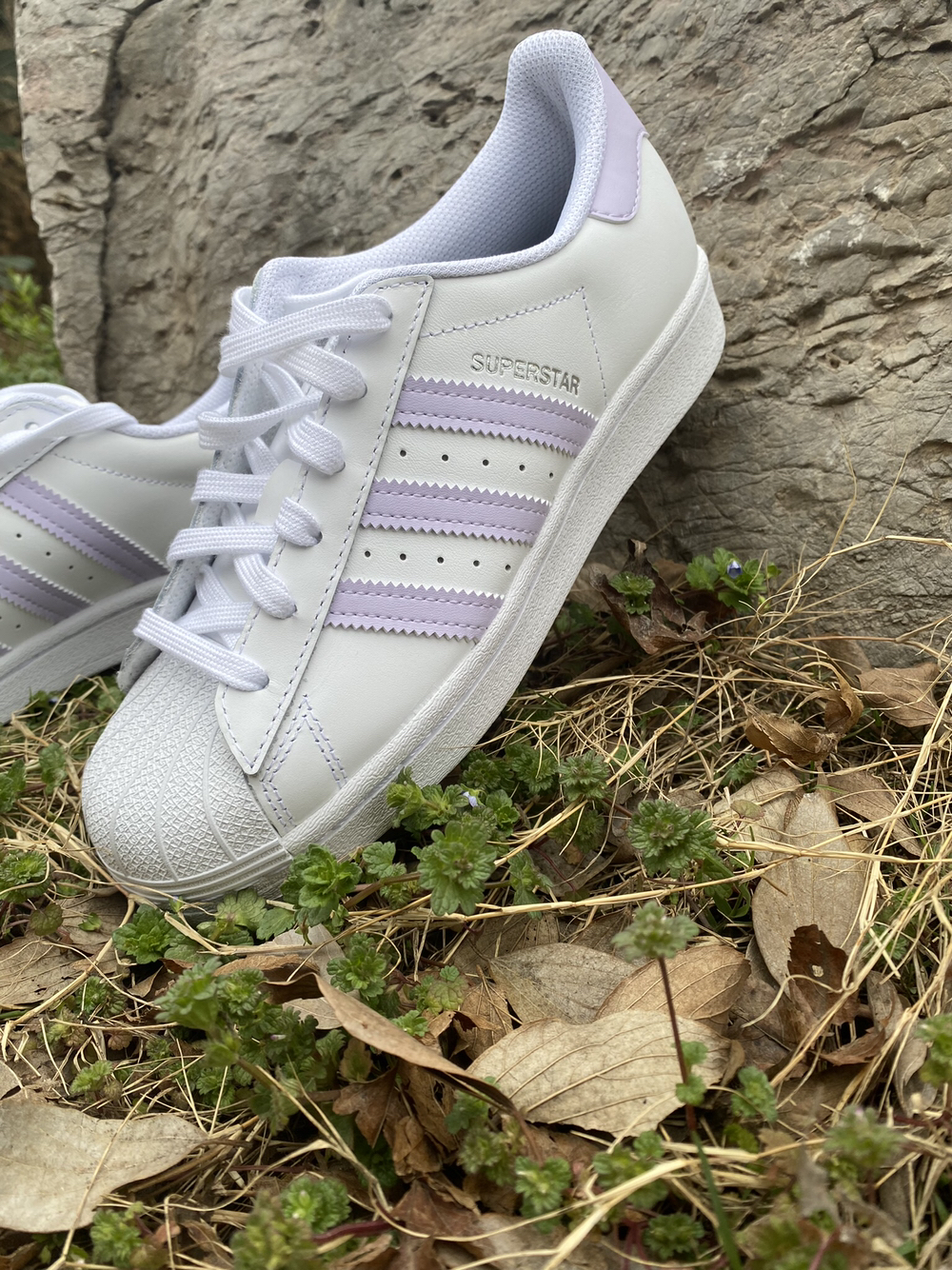 adidas originals Superstar女款淡紫白 ⭐️:adidasOriginalsSuperstar诞生于1969年,是第一双将全皮面鞋身与橡胶鞋头结合在一起的低帮篮球鞋。 ⭐️:Superstar最开始是作为高帮篮球鞋ProModel的低帮版本而出现的,但因为其独特和醒目的橡胶鞋头造型而让大家熟知,被大家形象地称为“shelltoe”贝壳头。 ⭐️:这双鞋子以白色加淡紫配...