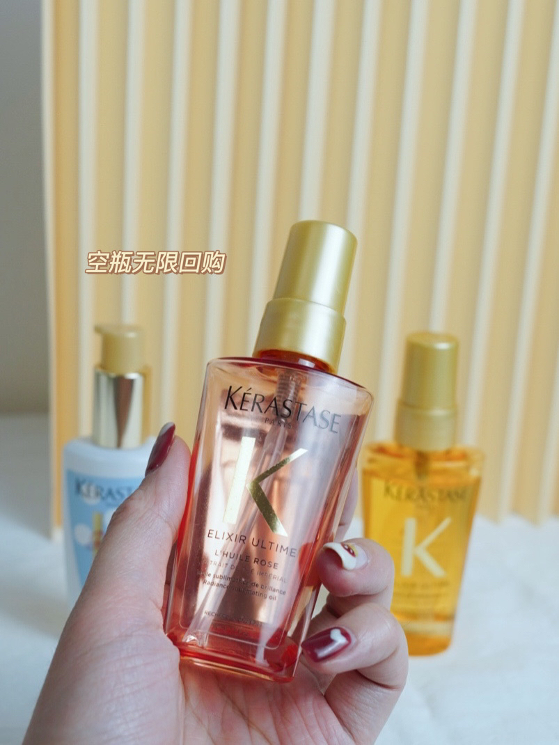 我的头发吧,虽然少,但是它毛躁。。。主要是之前弄头发啥的折腾太多了~养了很久了还是得继续,哭泣~我再也不折腾我这点儿即将秃顶的头发了哈哈哈哈~ 我回购比较多的就是卡诗,除了有点儿贵没啥毛病~ 卡诗秀发高光瓶(金色):适合正常发质和像我一样头发干枯无光泽的 卡诗玫瑰粉油(粉瓶):适合烫染完头发之后想要固色和喜欢玫瑰花香的 那我一般还是入手金瓶的,毕竟我已经不烫染头发了就不大用粉瓶。但是有一说一...
