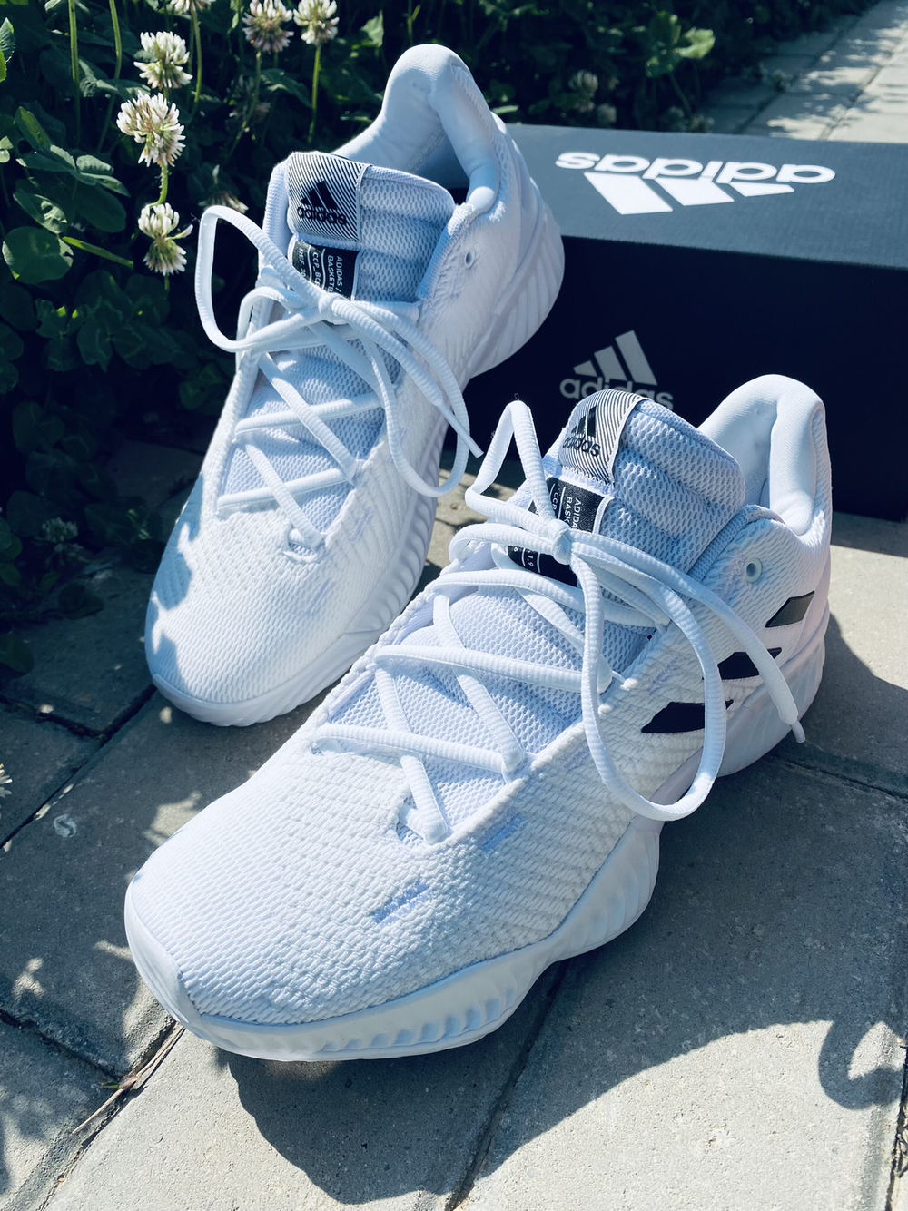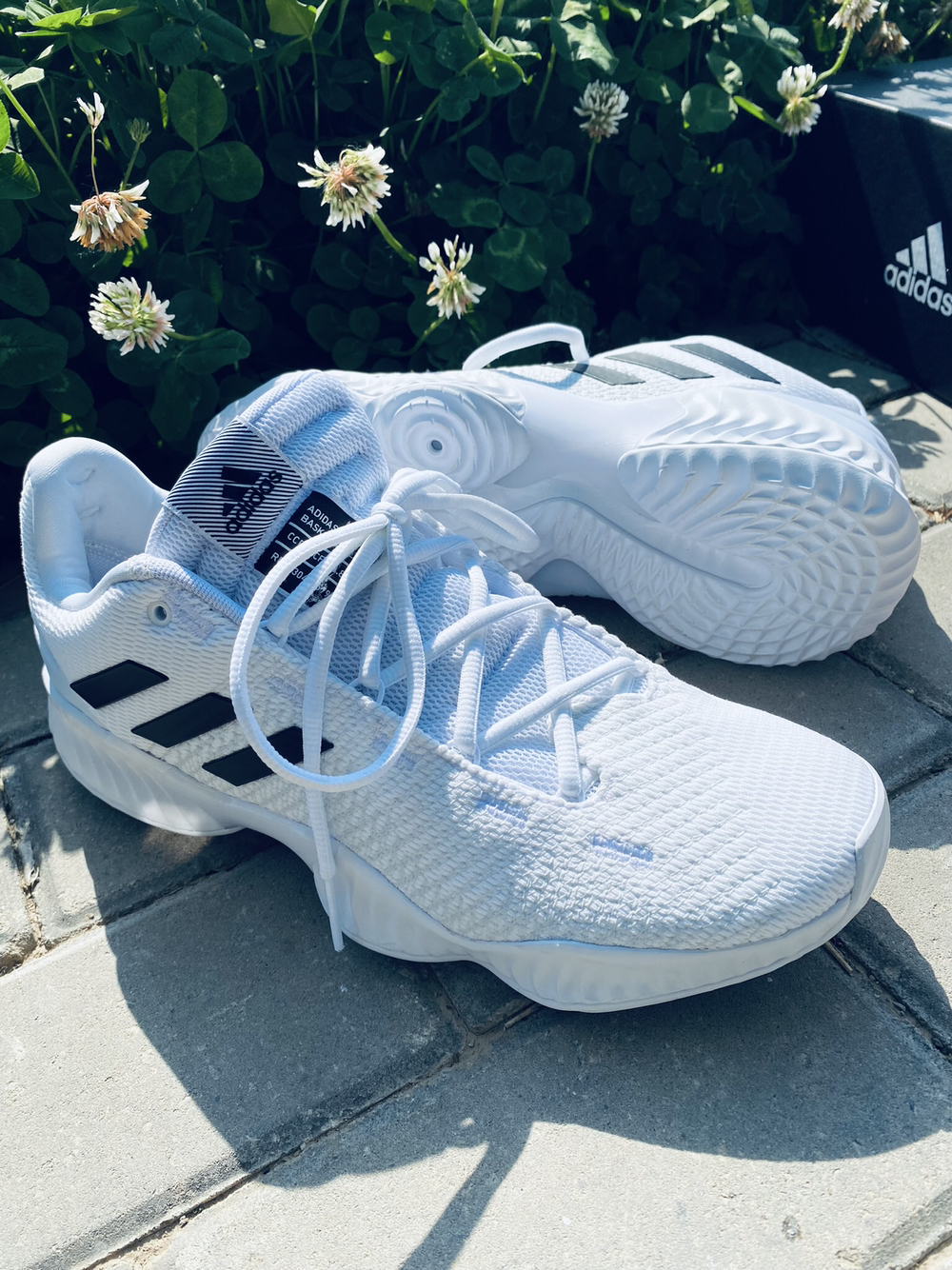 adidas Pro Bounce2018Low白黑 🔥鞋面采用全白的网眼面料透气性非常好,但缺点就是鞋面的支撑不是很好,鞋身经典的Adidas三道杠设计,提高鞋子的辨识度,整体设计简约风格,白色的橡胶大底呈现。 ⭐️设计细节 中底部分搭载了厚实的全掌Bounce缓震,提供出色的回弹反馈,足弓处采用大面积TPU支撑板增强抗扭转,橡胶的大底水泥地面也完美驾驭。 ❌这双鞋子缺点就是不耐脏,包裹还...