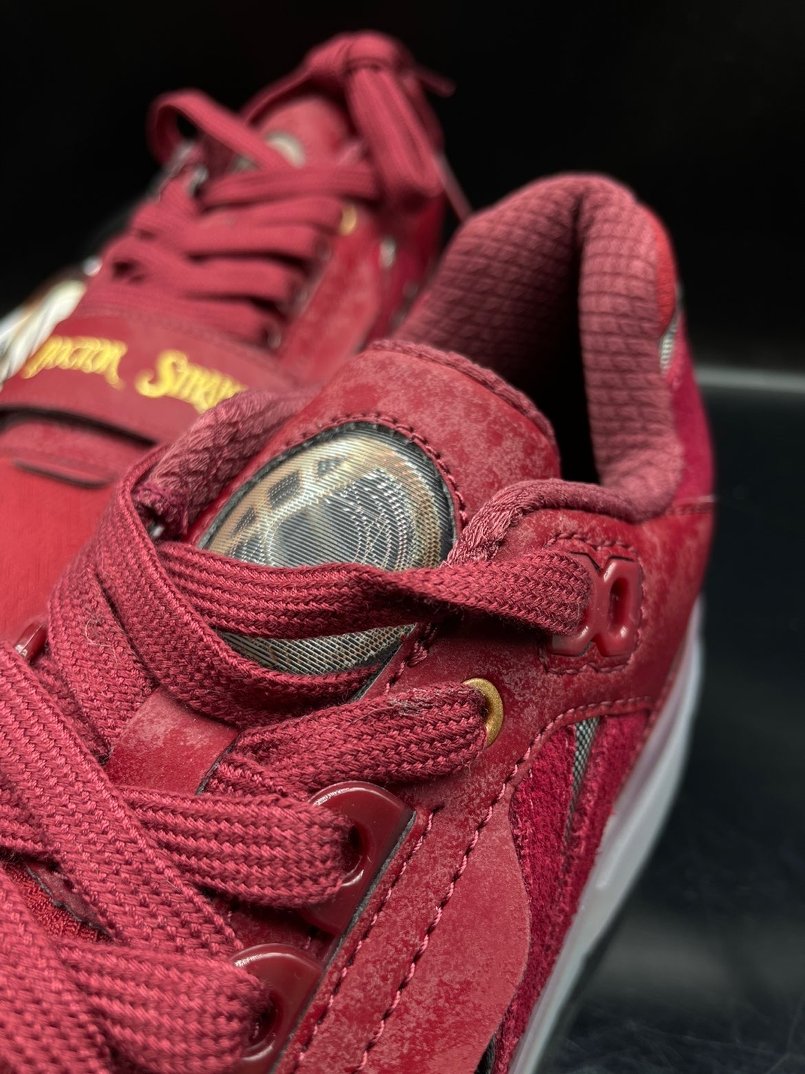 新秀的诚意足以看出那李宁这次势必要搞一波大事情。以奇异博士标志性的“红斗篷”作为设计元素,麂皮鞋面自带的做旧效果,侧面银色线条勾勒的李宁logo,这双新秀至少视觉效果上质感十分不错。既然是联名款,细节肯定不会少,鞋舌上的带着闪卡效果的“奇异博士”logo,给这款鞋增添了一些“科幻片”的炫酷感。新秀标志性的绑带上的金色刺绣“奇异博士”id又增添了一些神秘的色彩。绑带内部的两句“teach me”、“...