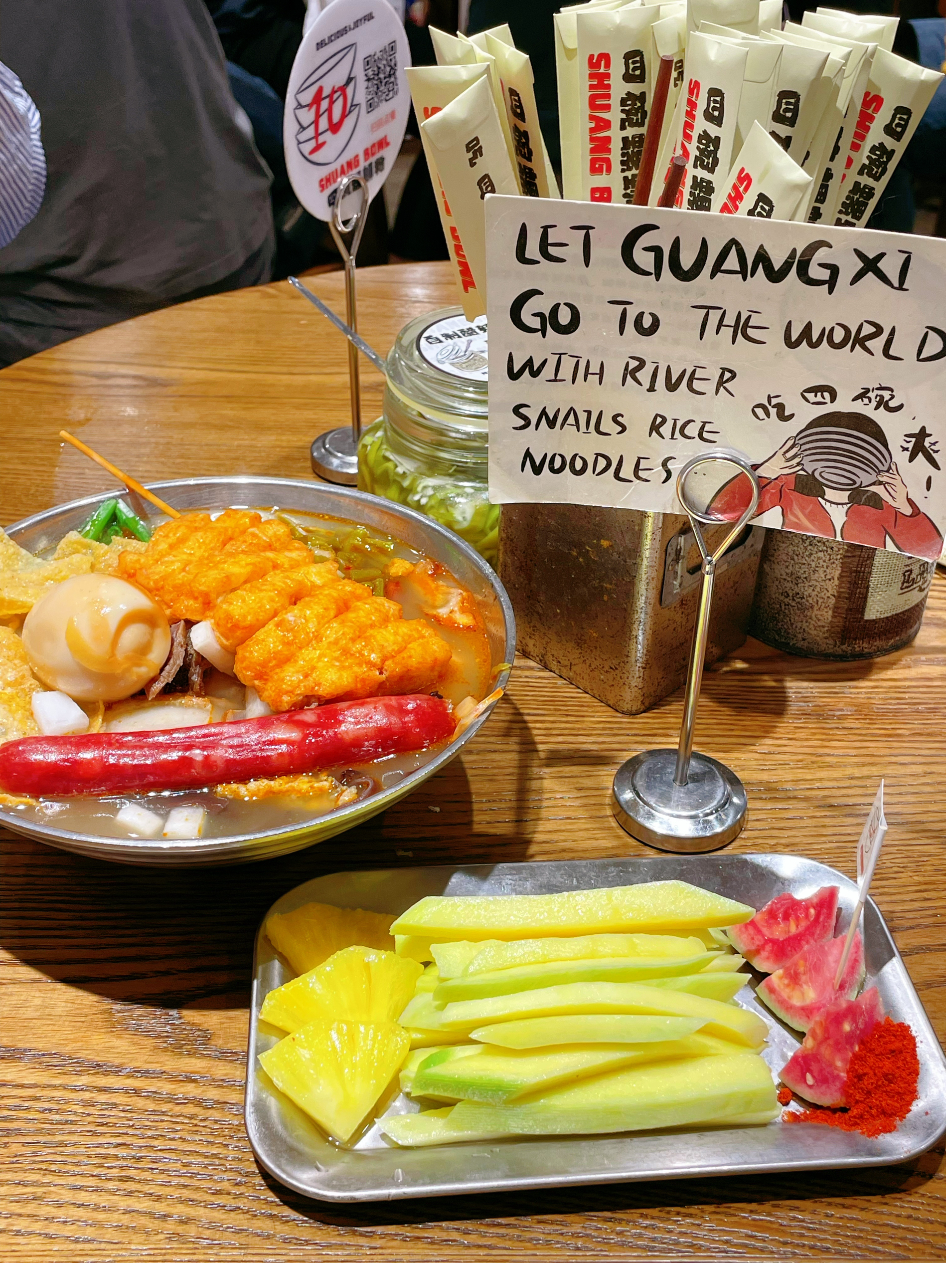hii这里是大双 打卡了爆火的四碗螺蛳粉 店名:四碗螺蛳粉 📍 鼓楼区北大路244号 (达明美食街一直往前走就看到啦) 大概十一点多去的 没有多久就有座位了 隔着大老远就能闻到的“臭味”哈哈哈哈 工业风的装修很特别 可以说是整条街算是最突出的 满满的工业复古风拍照很棒哦 不想煮粉又想嗦粉的宝子们冲啊!
