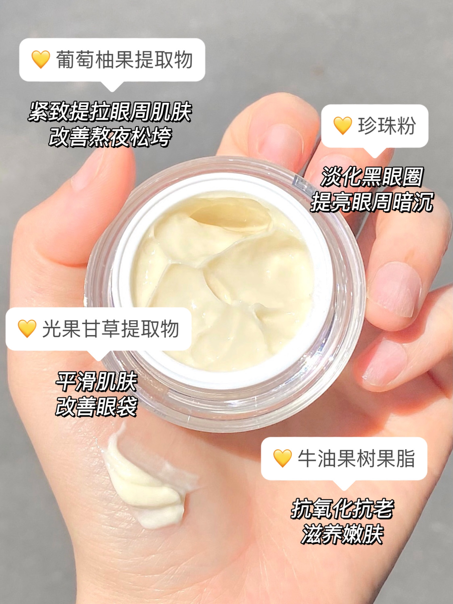 打工人真的太苦了 动不动就熬夜做方案 天天顶着个熊猫眼 还有那快掉到下巴的眼袋 化妆都遮不住! 整个人看起来很疲惫😫 还好前段时间被我挖到了宝! 就是这个马应龙八宝眼霜 把我的黑眼圈和眼袋都快给抹没了 这也太🐂了吧! - 它是专注眼部护理的良心国货 成分啥的我都看过了 温和不刺激 敏感肌可以大胆冲! 主要成分是光果甘草提取物+珍珠粉 可以平滑提亮肌肤 淡化黑眼圈 改善眼袋 还有葡萄柚果提取物+牛油...