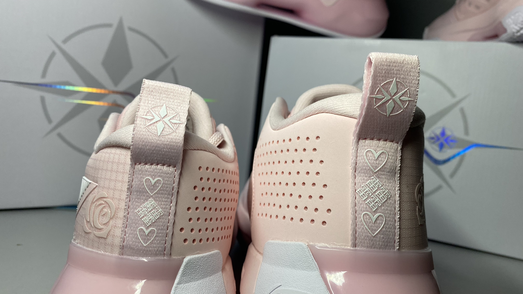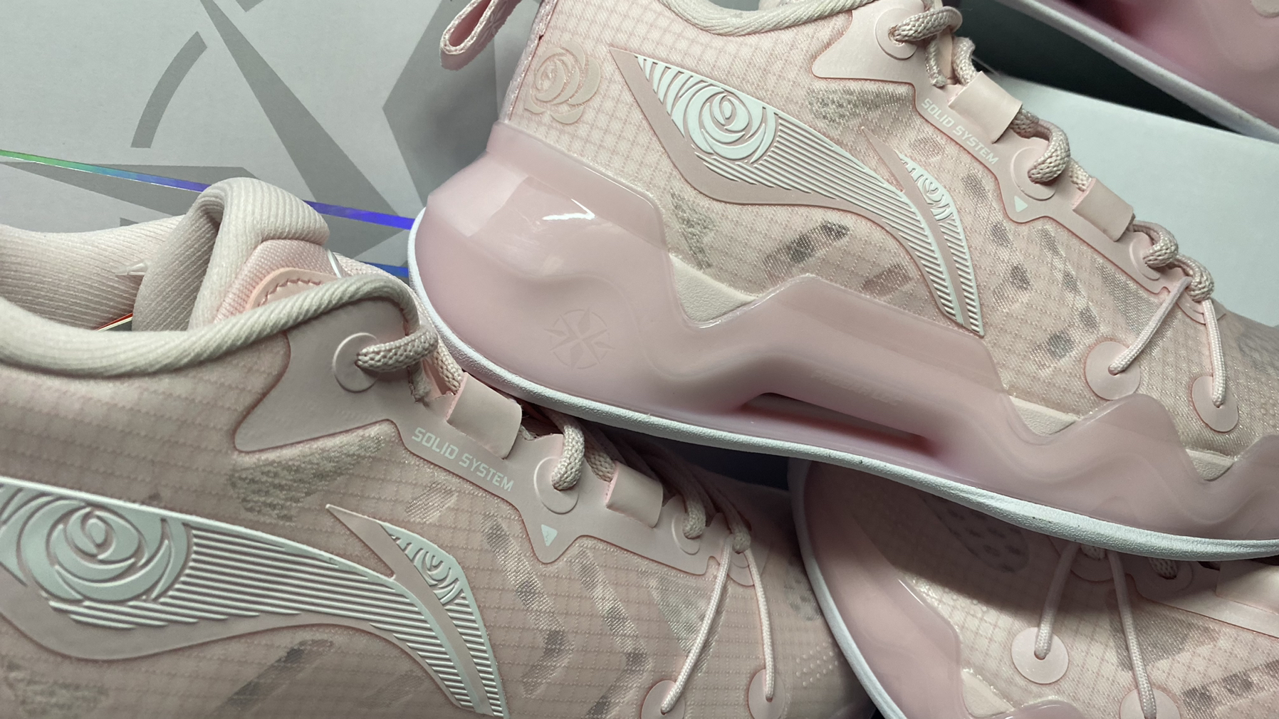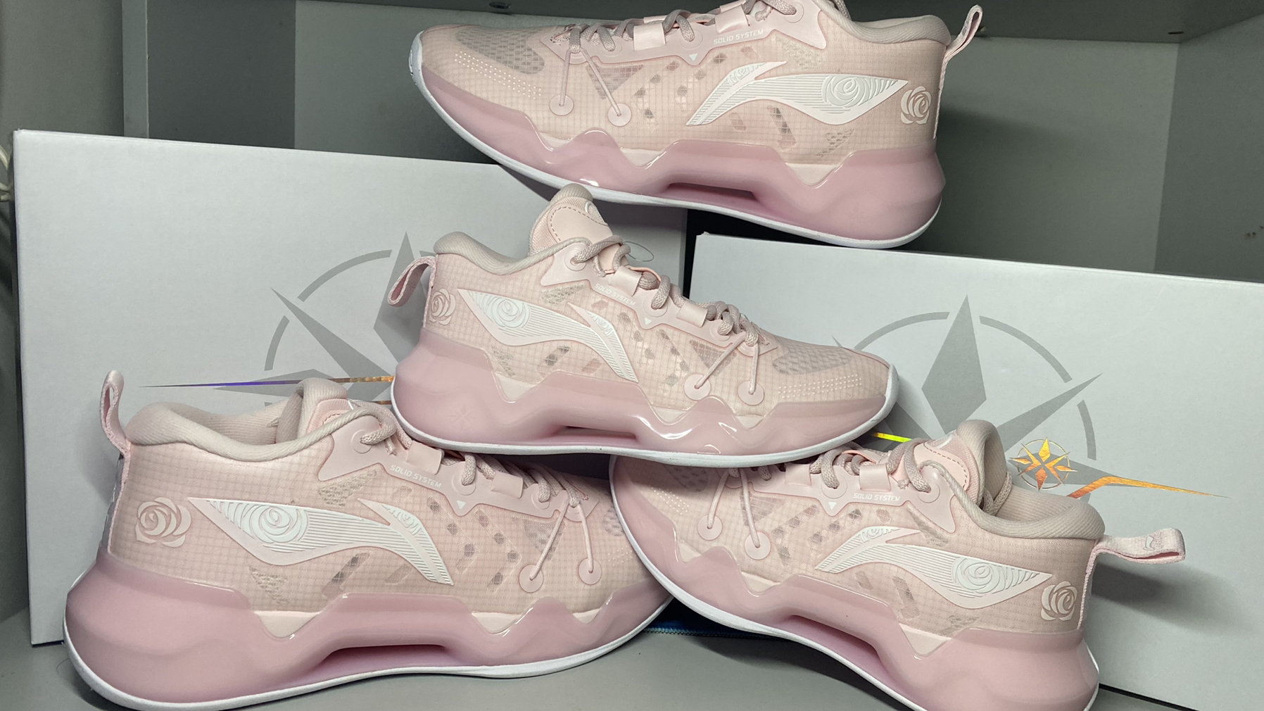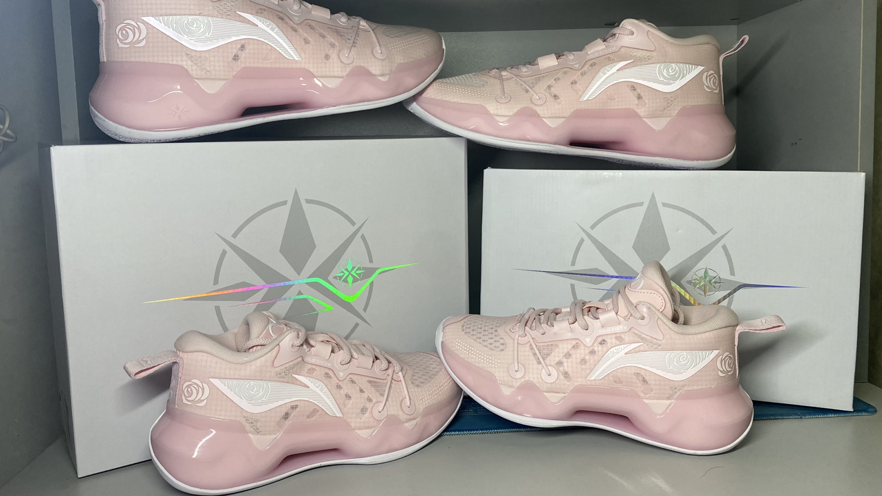 配置不变 但是细节确实改变了 李宁logo的颜色改成白色 增加玫瑰花图案 整体非常不错 推荐情侣购入 可以在提高球技的同时 提高情侣的感情 如果你单身 那么更适合你 粉色的球鞋让人欲罢不能 还等什么 快冲