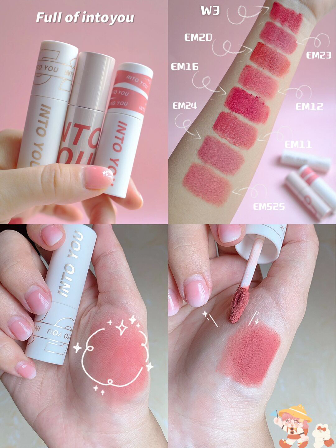 是into you唇泥老粉了,这些唇泥子都挺平价的,多入几支每天换个色号也不会肉疼!分享几支心头好~ EM11 回购好几次的微醺玫瑰色,叠涂调色好方便,单涂也好好看,伪素颜必入! EM12 活泼可爱的糖渍草莓🍓这支白皮涂更适合喔,夏日就不能没有她嘛。 EM16 海盐玫瑰色,厚涂秒变辣妹女团,好显白的一个色调,是我的常用色号~ EM20 一个橘调的枣红色,比较适合秋冬涂,上嘴气质满满!黄皮也很友好哦...