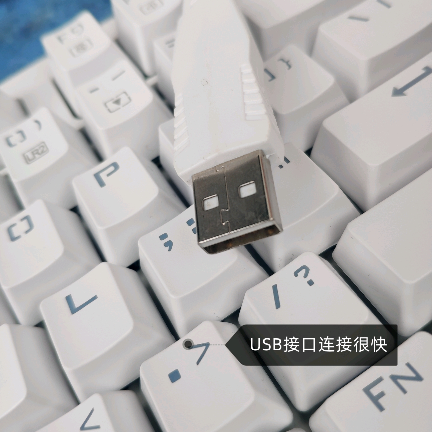 👍简单说一下这款键盘连接线,是不可与键盘分类的一体式设计,在官方宣传页中说这是一根三重抗干扰线,我猜测这是在线体内做了金属箔包裹。连接头毫无疑问是USB,拿磁铁测试了一下,可以吸,所以USB头的材质应该是铁镀镍。