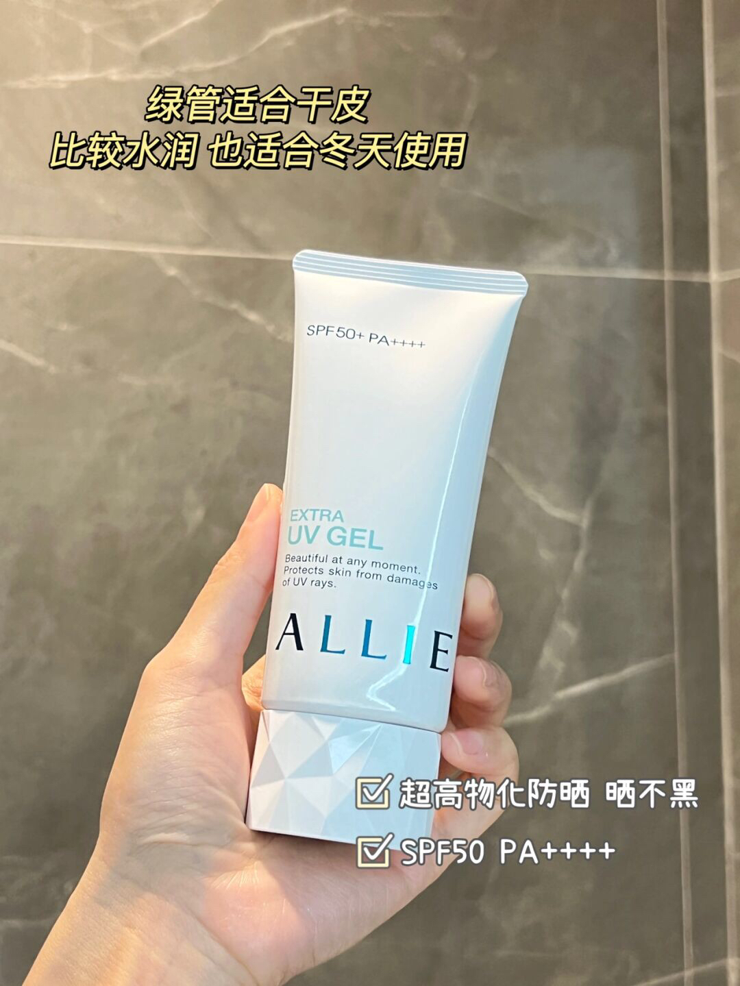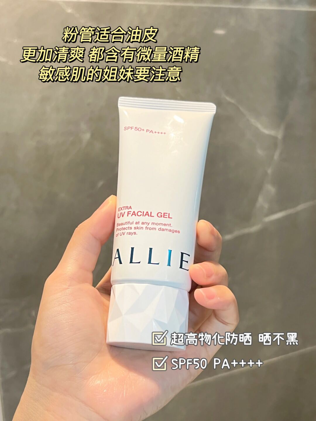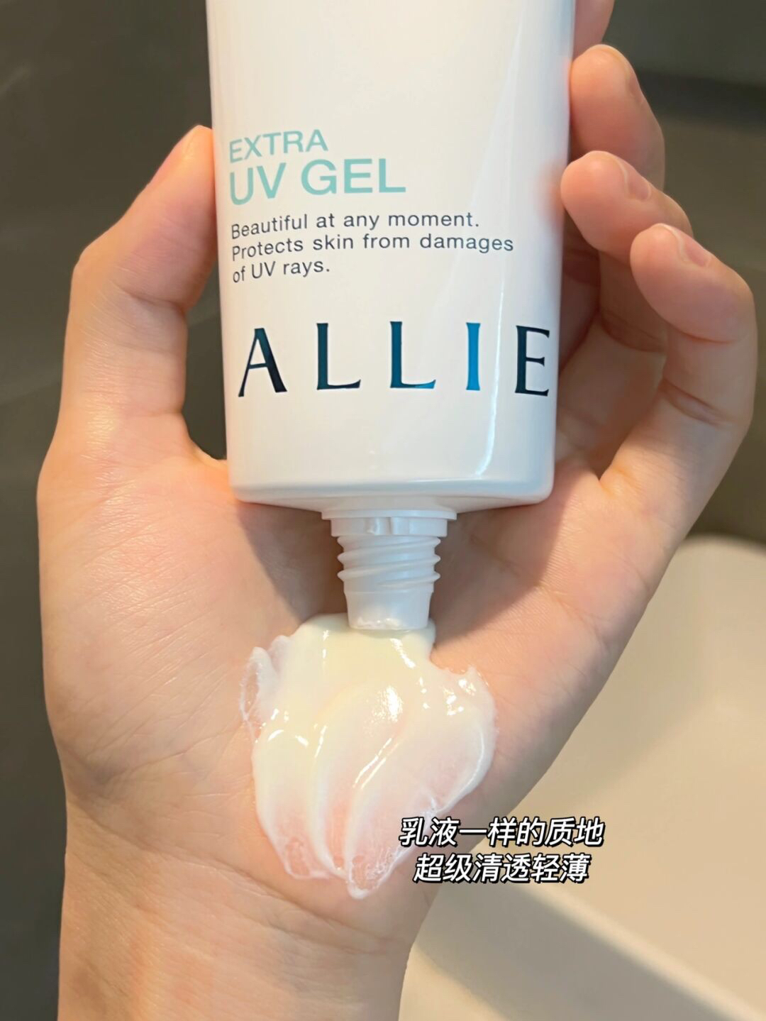 像我这种混油皮,要找一瓶心水的防晒真的太太太难啦 质地太油的容易泛红闷痘,太轻薄的防晒力又不够 有些喷雾呢...感觉喷上跟没喷上差不多,真的是很头疼 但是最近发现了一瓶宝贝!! 是朋友推荐给我的allie皑丽防晒霜 质地我真的是太喜欢了,超级轻薄好推开的乳液质地 而且里面添加了玻尿酸和胶原蛋白这种对于大干皮来说特别友好的保湿成分 上脸的感觉真的超级舒服,清爽不油腻,皮肤完全没负担 整个脸水...
