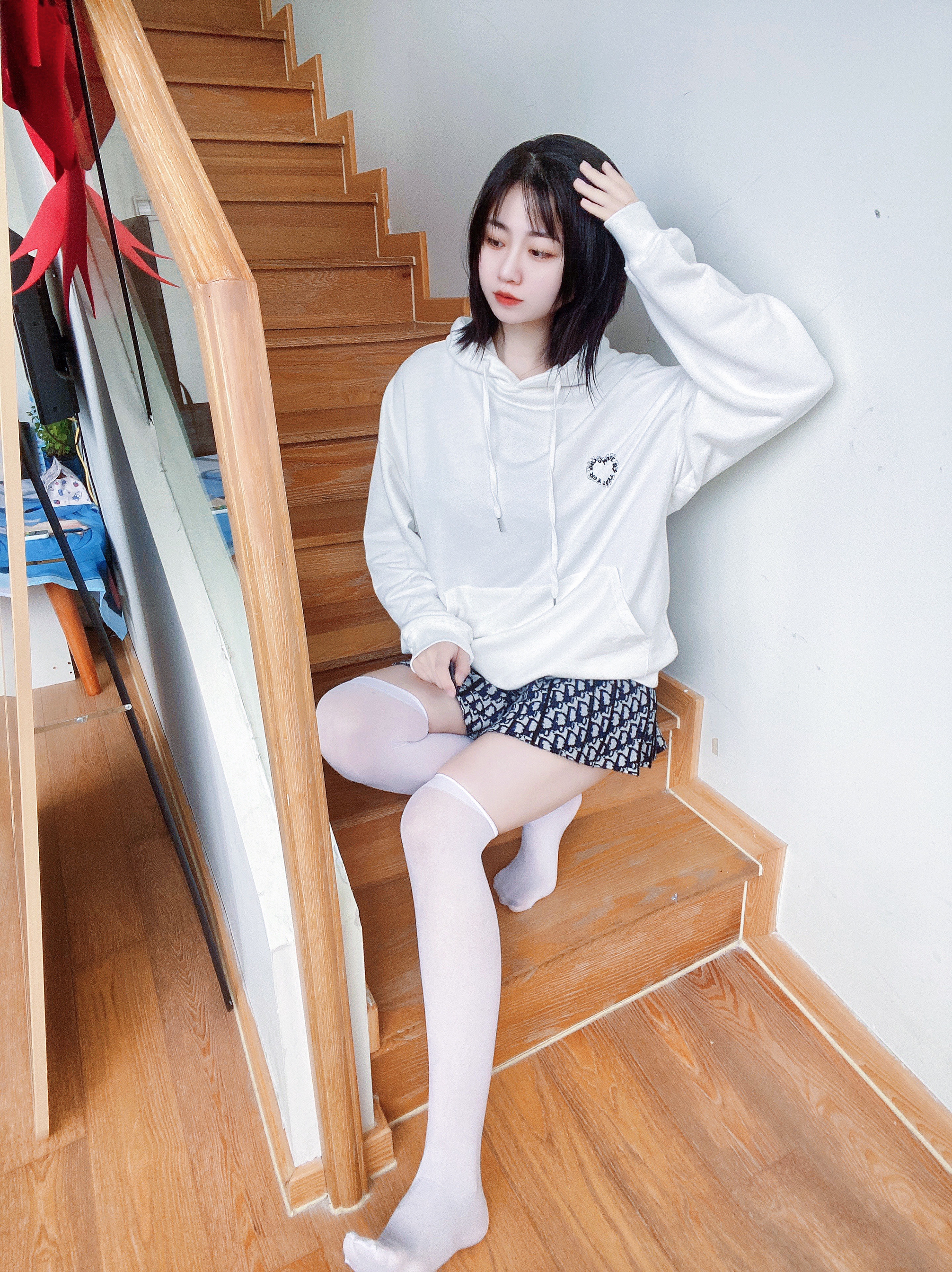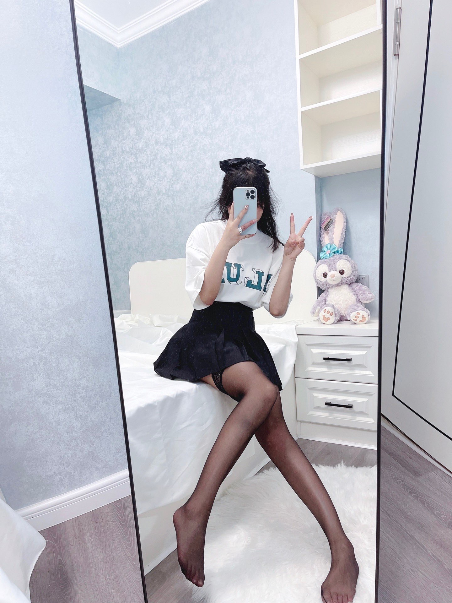 性感风走一走?配小短裤也很好看。 T恤是华夫格的面料,透气感很好👍🏻