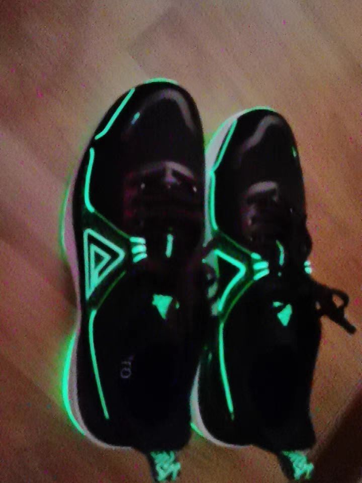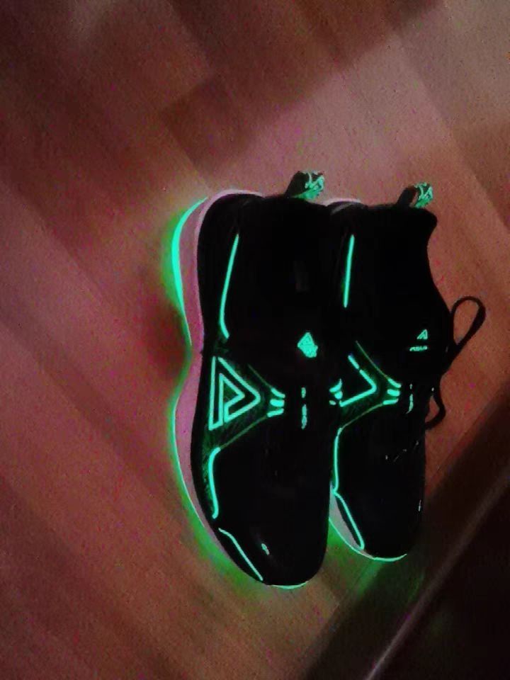 建议大家拿到货之后把鞋带松一下,我穿还是有点紧,松一下鞋带刚刚好。大家一定一定一定要买黑色的黑色的晚上就会亮光鞋上的线条底子都会亮,特别特别好看。这一带4.0p相比上一代3.0 P底子有了更多的优化上一代底子过于软。这次底子适中,但也特别软。很舒服鞋底很大特别好。黑暗中拍的不是特别好,见谅。实物要比照片帅太多。