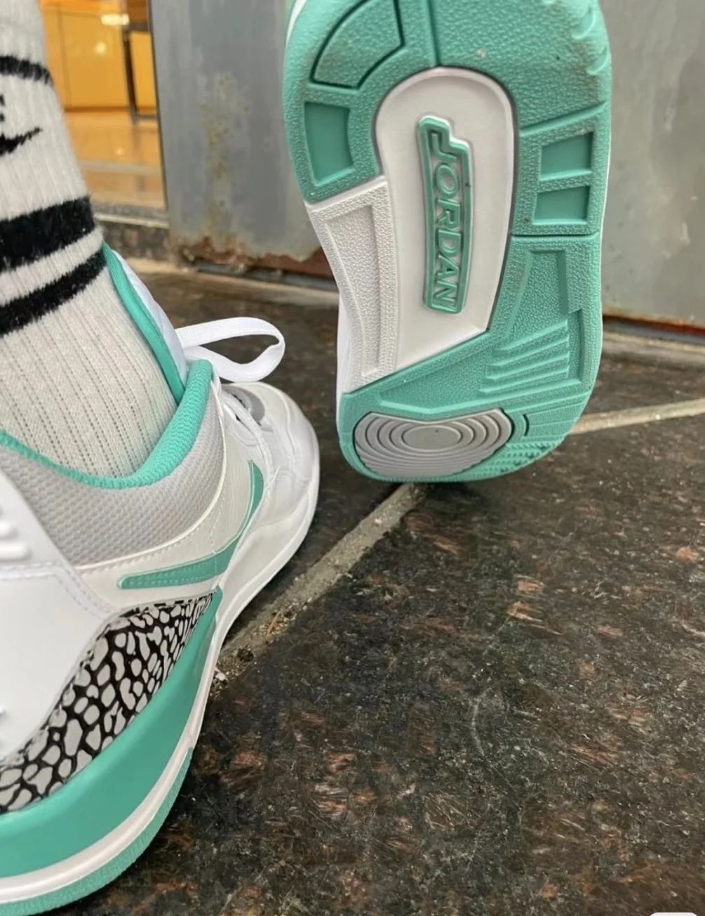 哈喽,大家好! 今天给大家上脚的这款球鞋是AirJordan Legacy312Low白绿小蒂芙尼。 今年耐克复刻了一系列的312中帮鞋款的配色,一经推出就受到了很多球鞋爱好者的喜爱,那今年春夏季,耐克再度趁热打铁,又推出了一系列的低帮产品配色,其中就包括了这双白绿小蒂芙尼 312这款鞋型是融入了多种经典元素在鞋身中,包括Air Jordan3、Air Jordan1和Air Trainer2,非...