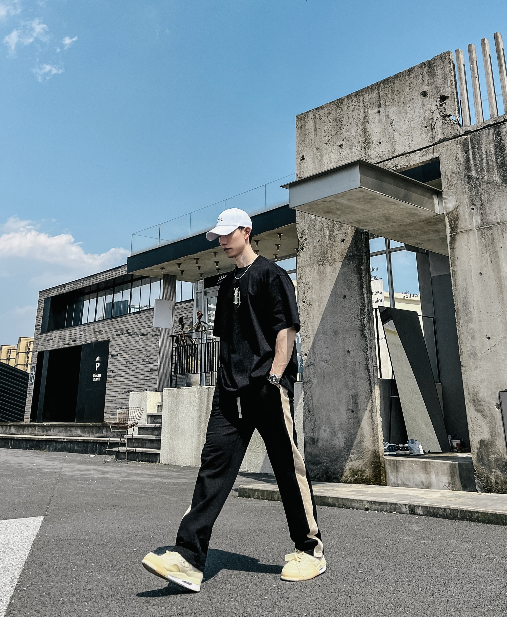 👕上衣:这黑色T恤版型好顶➕图案logo也太好看了。质量很ok,性价比高。 🩳短裤:这条直筒卫裤版型依然很顶,比较厚,适合春秋冬,夏天如果只穿长裤的小伙伴可以入。 👟鞋子:aj4 ow 的这个配色,到今年依然不过时。 短袖:HLG 裤子:HLG 鞋子:nike