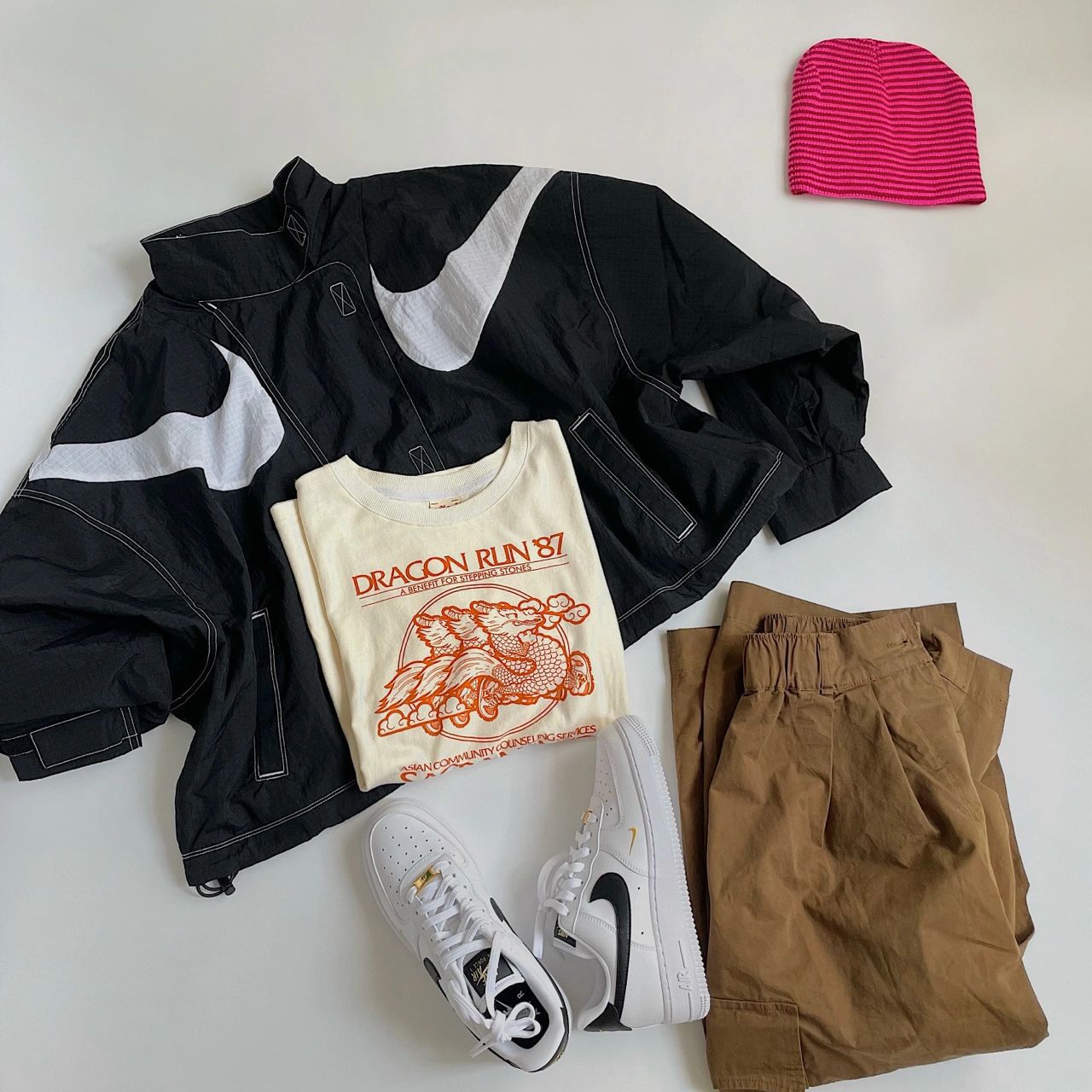 T恤:AKOM 外套:Nike 双钩夹克(DD5585) 伞裙:白鲸公园 鞋子:NIKE AIR FORCE 1 ’07 ESSENTIAL(CZ0270) 包包:sculptor 🤹🏼 太喜欢戴冷帽啦 初秋傍晚有点凉意 穿件薄的夹克外套就很ok了 今天的look是比较简约的 米色T恤和棕色伞裙 搭配了很经典的AF1 空军一号舒适度还是蛮不错的 这款加了迷你小金钩 配色是白色黑钩 整体就非常百搭 ...