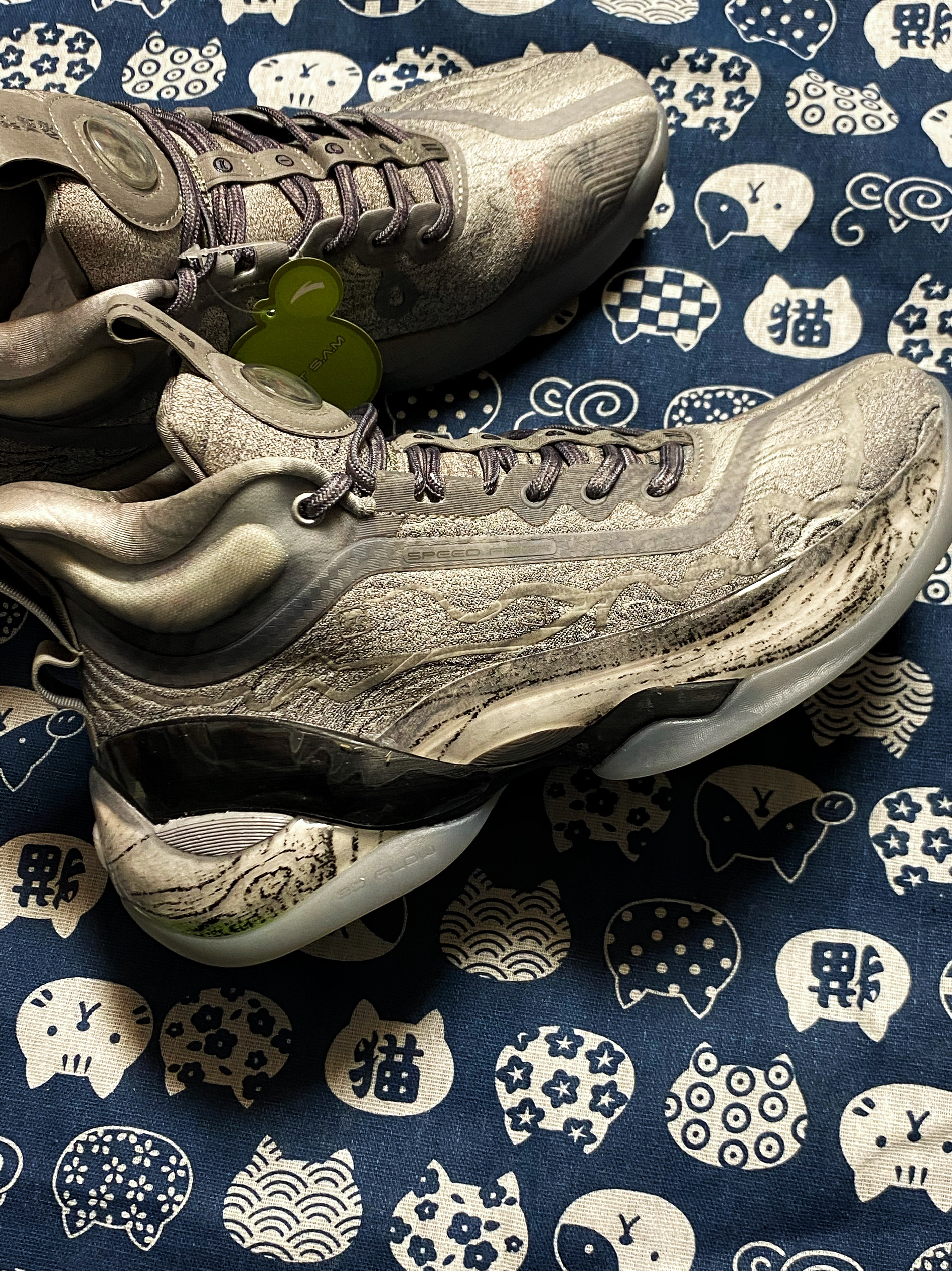 👟名称:Anta安踏KT7氮科技实战篮球鞋灰色十二水图 💫鞋子整体配色采用了灰色和黑色搭配组合而成,特别的沉稳大气。鞋面采用了一幅墨画一样的设计优美动人。鞋面材质采用了织物合成革和TPU材质非常的舒适,这个冬季完全可以胜任哦! 💫鞋舌处有一个球形透明充气的装饰,特别的美观。整双鞋子充分展示了中国风格,将南宋名画《十二水图》呈现在了这双鞋子上,壮观美丽。 @得物创作课代表 @精选情报官 @得物A...