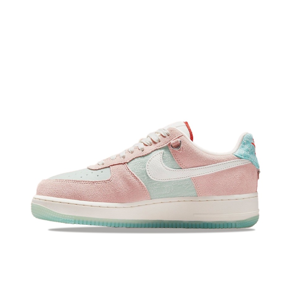 👟球鞋名称 Nike Air Force 1 '07 LX "Year of the Tiger" CNY低帮休闲板鞋 女款粉绿色 中国玉 虎年 中国年 👟整体评价 这款鞋子采用翻毛皮覆面,中足缝线采用传统水图案,有更多的水主题,鞋面和外地采用翠绿色调,侧面鞋跟采用三种翡翠图案,整体鞋身以浅粉色➕浅绿色作为主色,男女同款,可以当作情侣鞋来穿,尺码标准,脚宽建议拍大半码