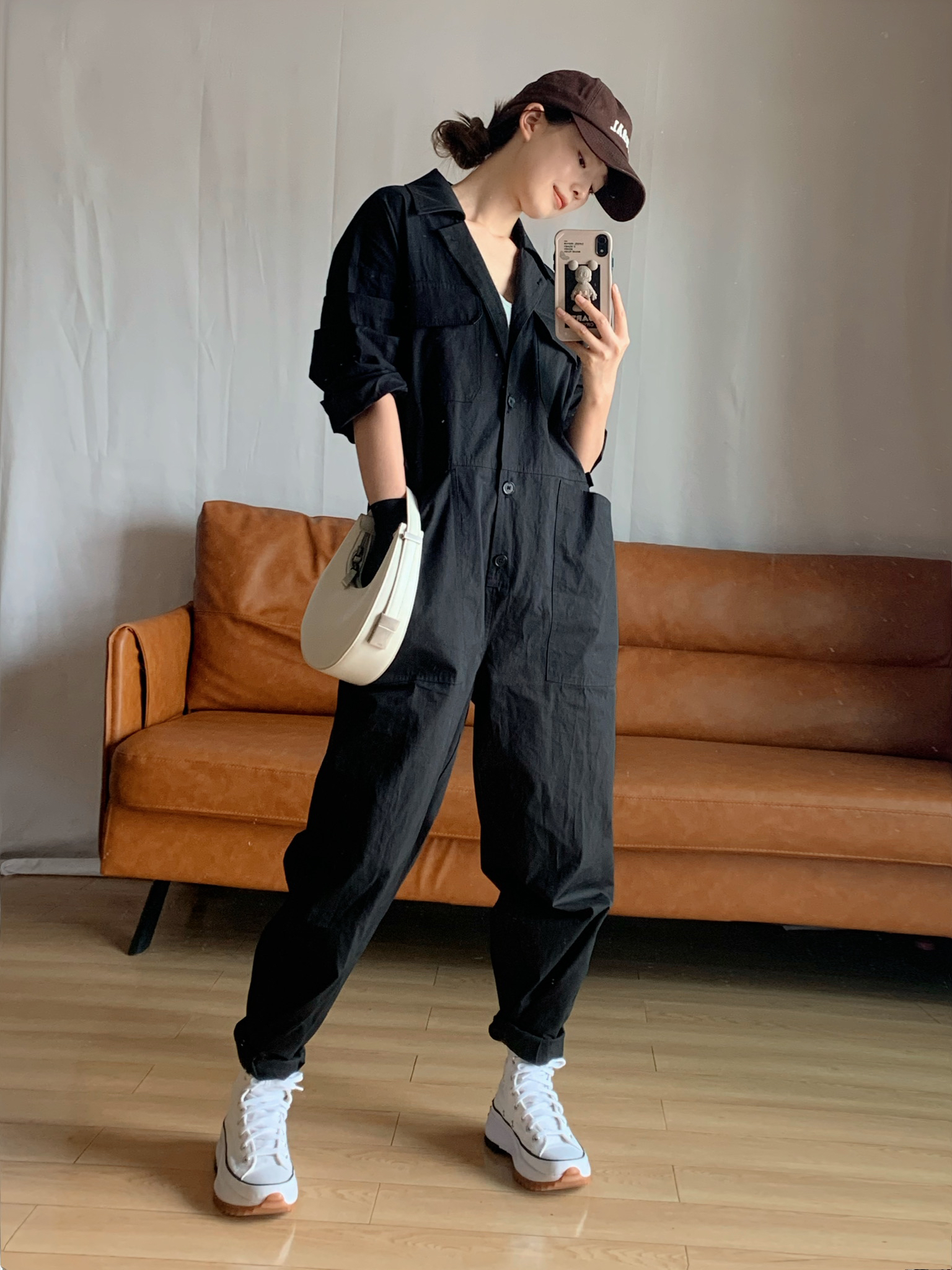 身高|体重:165/44 🧍♂️ 穿搭风格:简约休闲 🥋连体衣:Moment 1992 👟 鞋子:匡威