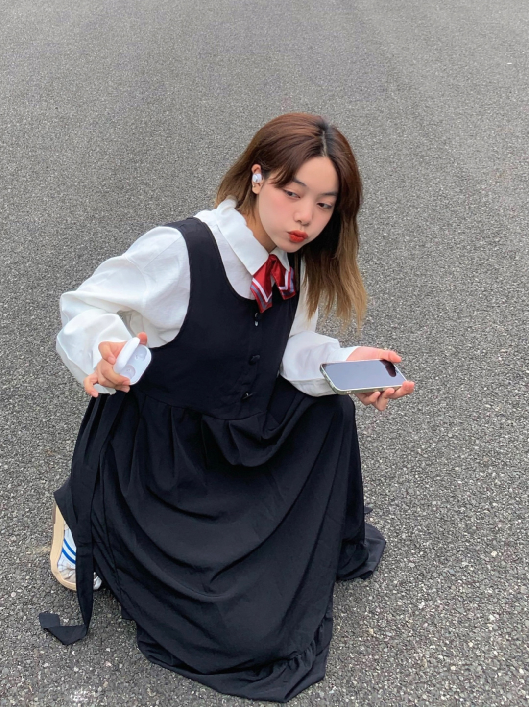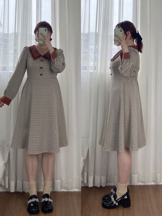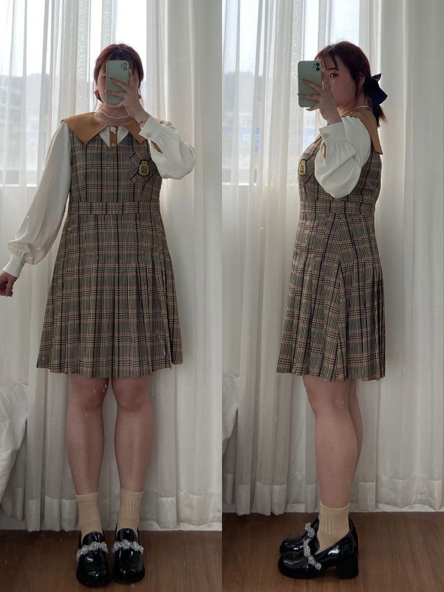 整体偏学院风 衬衫是娃娃领更加气质减龄~