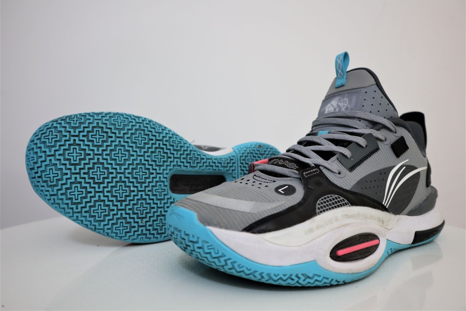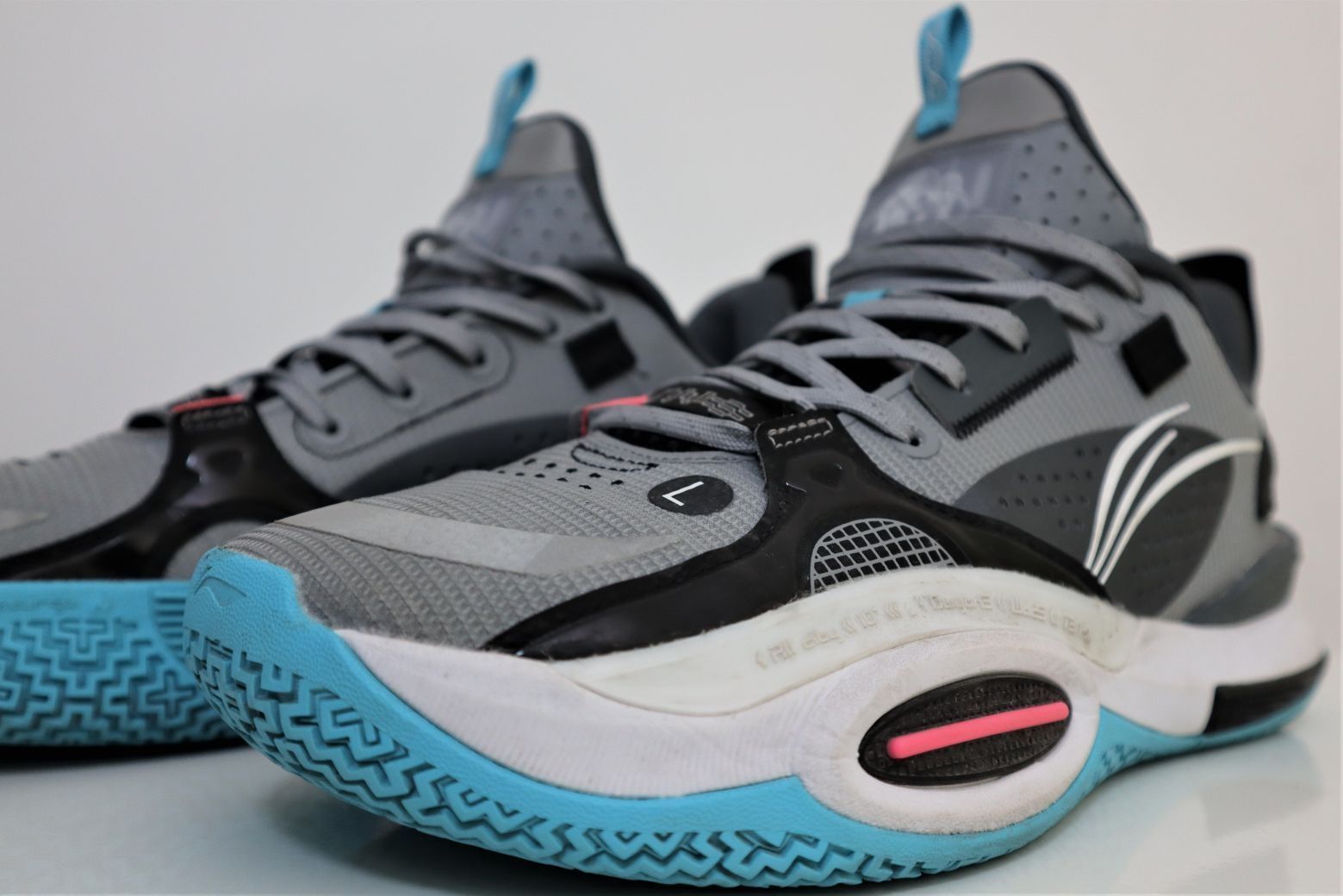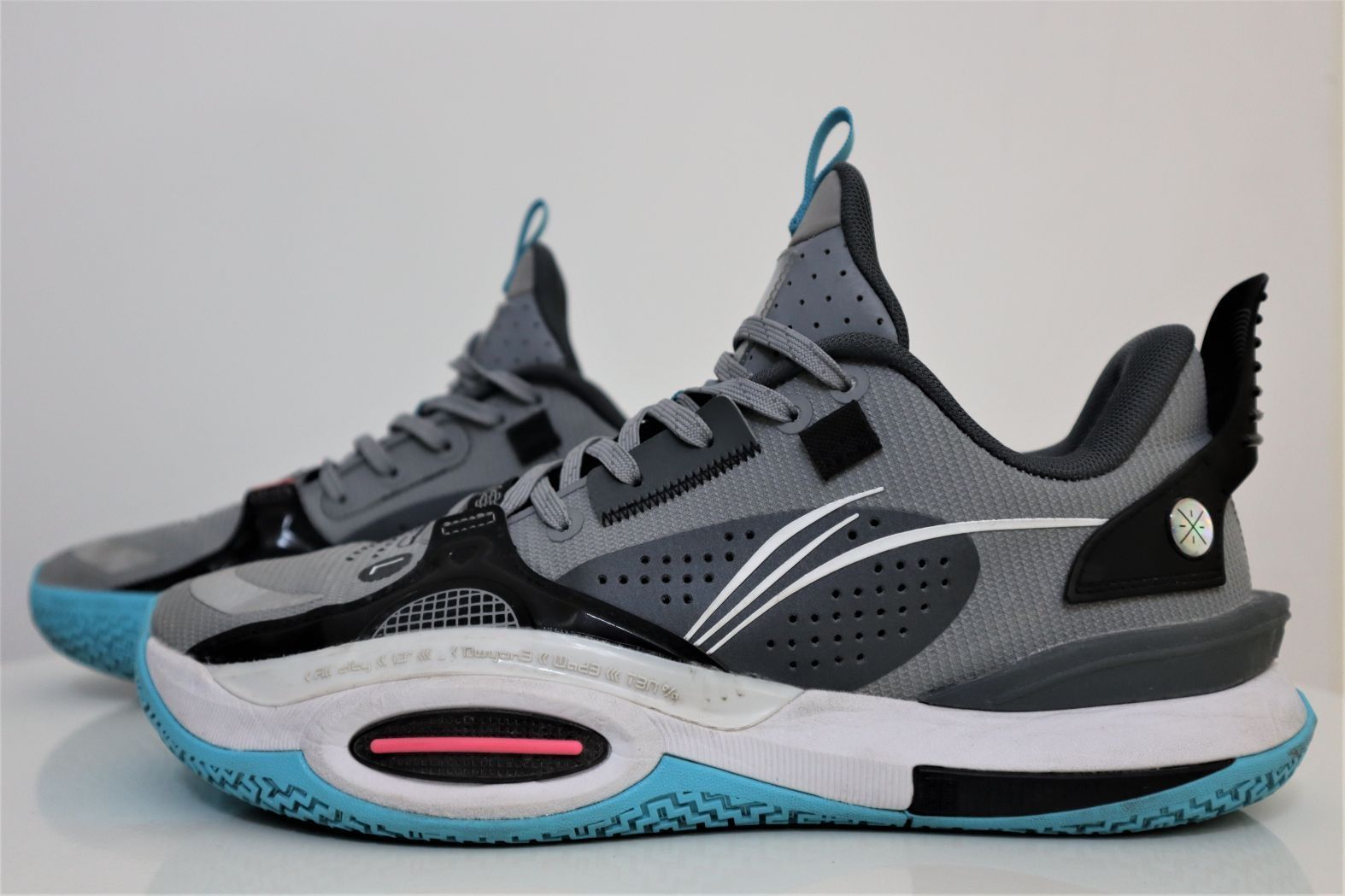 韦德之道全城10无眠配色 ①外观:经典的无眠黑灰蓝,少量玫红色点缀,鞋型修长,鞋帮高度相比9代有所降低,细节丰富,前掌外侧的TPU很有个性,线条式的李宁logo设计感十足,后跟还有韦德之道LOGO有点精致。 ②配置:全掌䨻加上李宁云加持,脚感软弹舒适,前掌外侧TPU加强侧向支撑,提升保护性,中底TPU抗扭片提升整体稳定性,鞋面强度也非常不错,低帮设计为脚踝提供良好的活动空间。 ③优点:整体性能均衡...