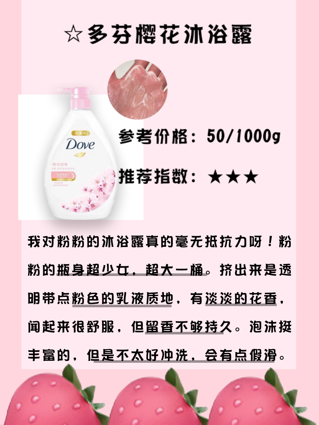 本篇笔记关联了Dove/多芬 滋养美肤深层盈润补水沐浴露 水透樱花甜香 深层莹润水嫩 易冲洗 樱花甜香、【丁禹兮同款】Shiseido/资生堂 可悠然大黄瓶香氛沐浴露 美肌嫩肤留香易冲洗不假滑 恬静清香、【双11必囤】强生美肌 水蜜桃恒日水嫩清爽沐浴露 持久留香 恒日水嫩等商品,为用户提供真实的使用体验和购买参考。