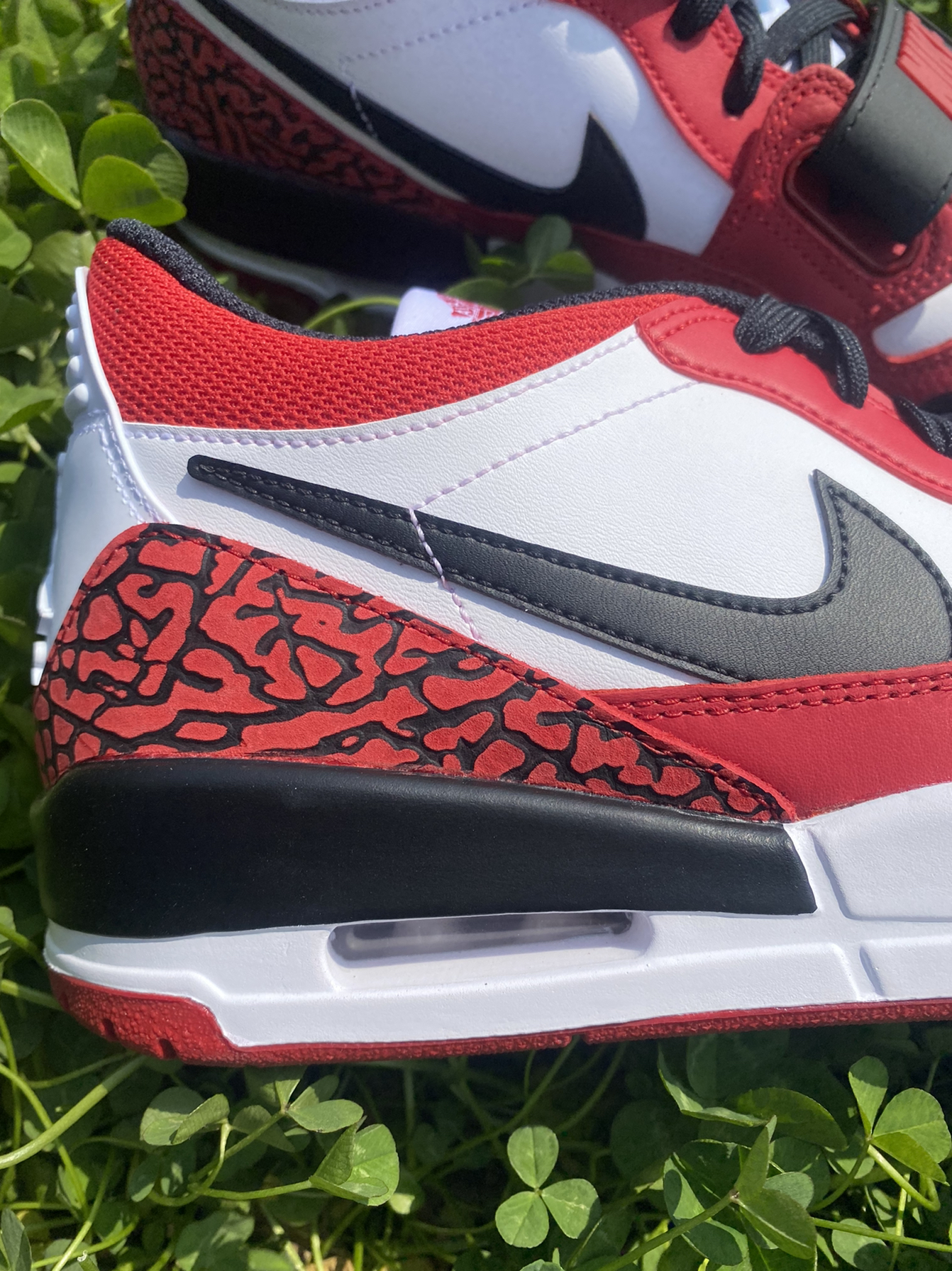 👟:Air Jordan Legacy312Low"Chicago"复古篮球鞋白红黑芝加哥 🍑:浓郁的红色为主,黑白为辅,相较于前两年的 AJ312更有芝加哥的感觉,中底更为偏白一点,皮革鞋面很柔软,魔术贴绑带设计两边会比较紧,有6个鞋带孔,整体鞋型显得比较修长。 🍑:鞋舌处采用AJ1的飞翼标签,后跟处飞人标志、经典爆裂纹细节和后掌Air气垫致敬了人气鞋款AJ3,多种球鞋元素组成。 🍑:搭配...