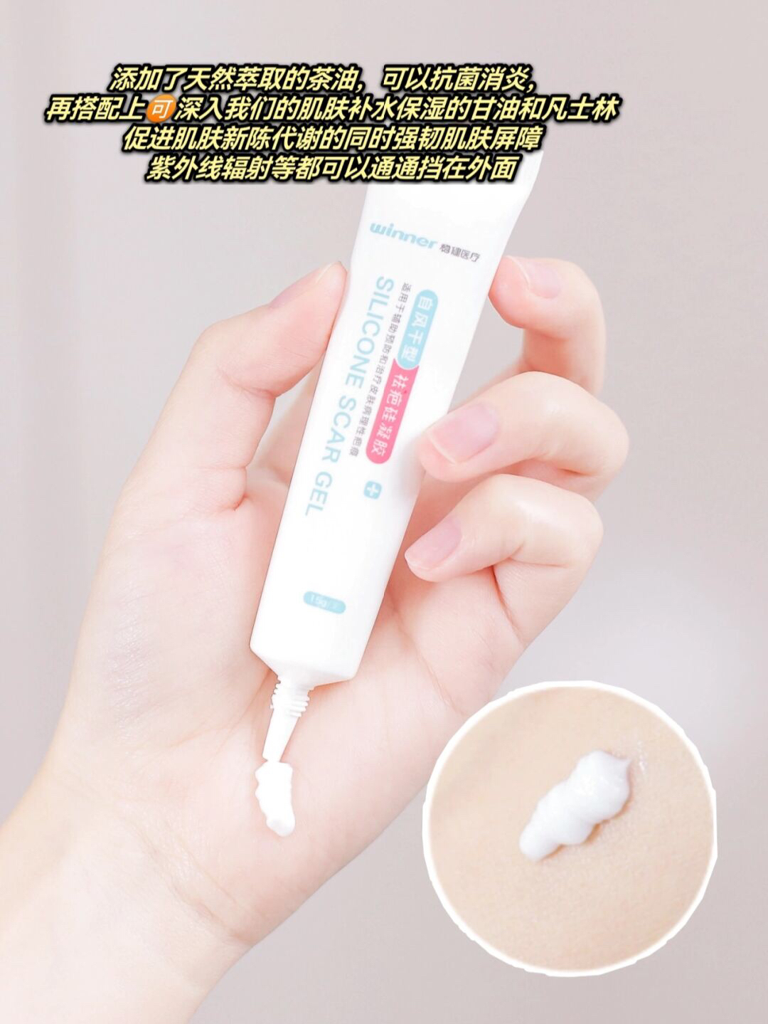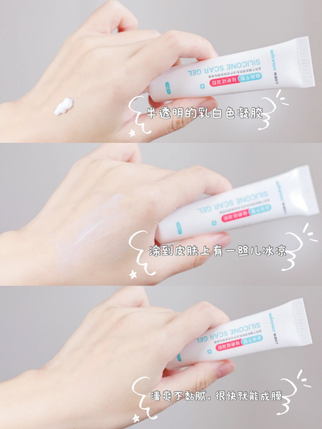 会在疤痕表面形成一层薄薄的保护膜(用在脸上也不影响上妆,很服帖)