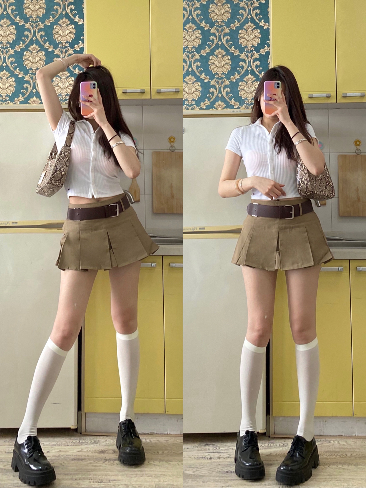 终于终于2021流行蜜大腿和梨形身材 哭了 🔗图文(我都标注了 还有想问的可以留言哦) - look.1 纯欲风上衣➕格纹辣妹裙➕小皮鞋 上衣:HGOFFICIAL 这套太好看了!!上衣绝绝子 裙子:HGOFFICIAL 短裙贼辣啊 自带短裤哦 皮鞋:littlegood 好看又百搭~ - look.2 白色polo➕棕色短裙裤➕皮鞋 上衣:Hollister 裙子:鬼马辣妹 美式复古百褶裙yy...