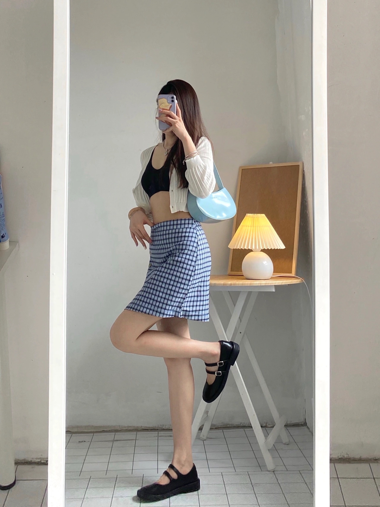 嘻嘻分享我的新背景~宝贝们喜欢吗 165/98 🔗看图(我都标注了 还有想问的可以留言哦) - look.1 无尺码内衣➕白色开衫➕灰色格纹直筒裤 BONASlife 这个无尺码无痕内衣泰舒服啦 实现内衣尺码自由 不闷汗还敲透气 HUFFNPUFF黑色格纹裤太简约韩系!直筒裤yyds - look.2 无尺码内衣➕白色针织衫➕蓝色格纹短裙➕玛丽珍 BONASlife 宝娜斯内衣U型美背还有其他颜色...