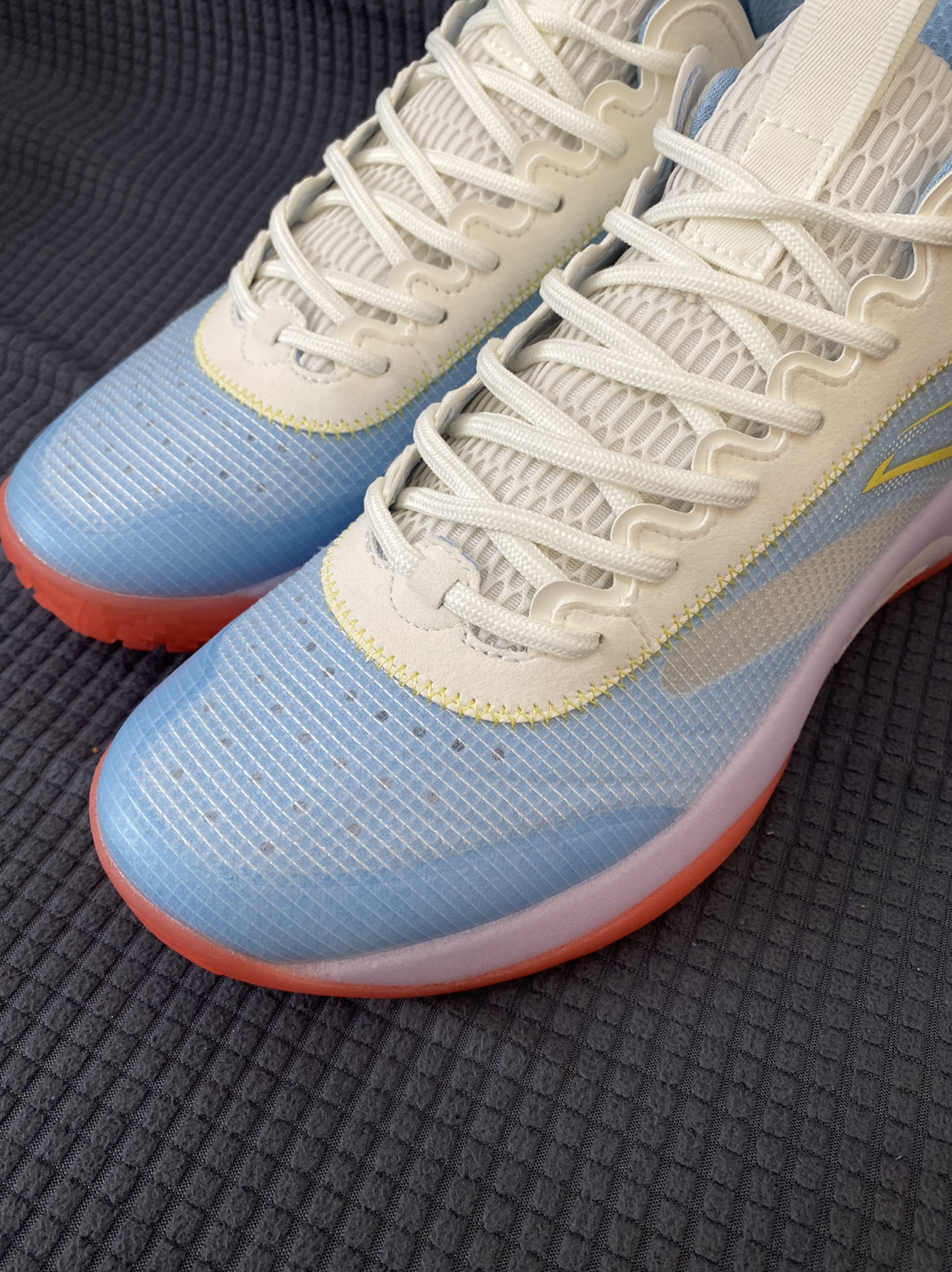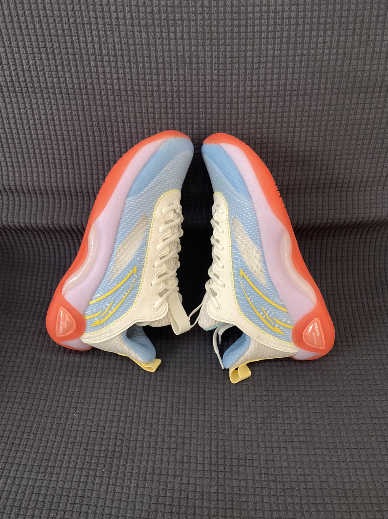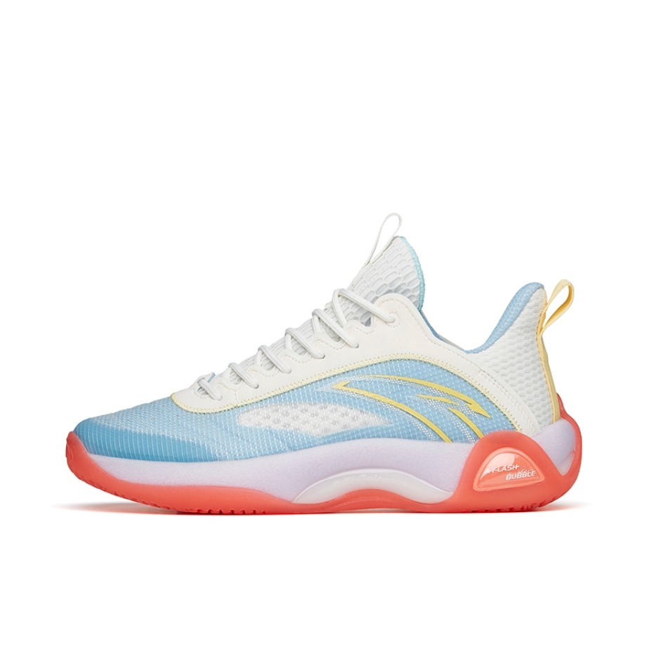 夏天你还考虑什么鞋打球?看看这个平价外场实战篮球鞋Anta安踏水泥泡泡2耐磨透气实战篮球鞋白蓝果冻上蓝 这双鞋子的配色的名字“果冻上蓝”很有创意,鞋面为蓝色呈现,中底有点类似淡紫色,鞋底红色点缀,内衬的配色与鞋面相呼应。 二代相比一代做到很好的升级,安踏真的很用心在做鞋,高强度透明网纱鞋面外加鞋头热熔胶支撑,全掌A-flash科技,中底bubble相比普通的EVA材质特别柔软,大底则使用橡胶大...