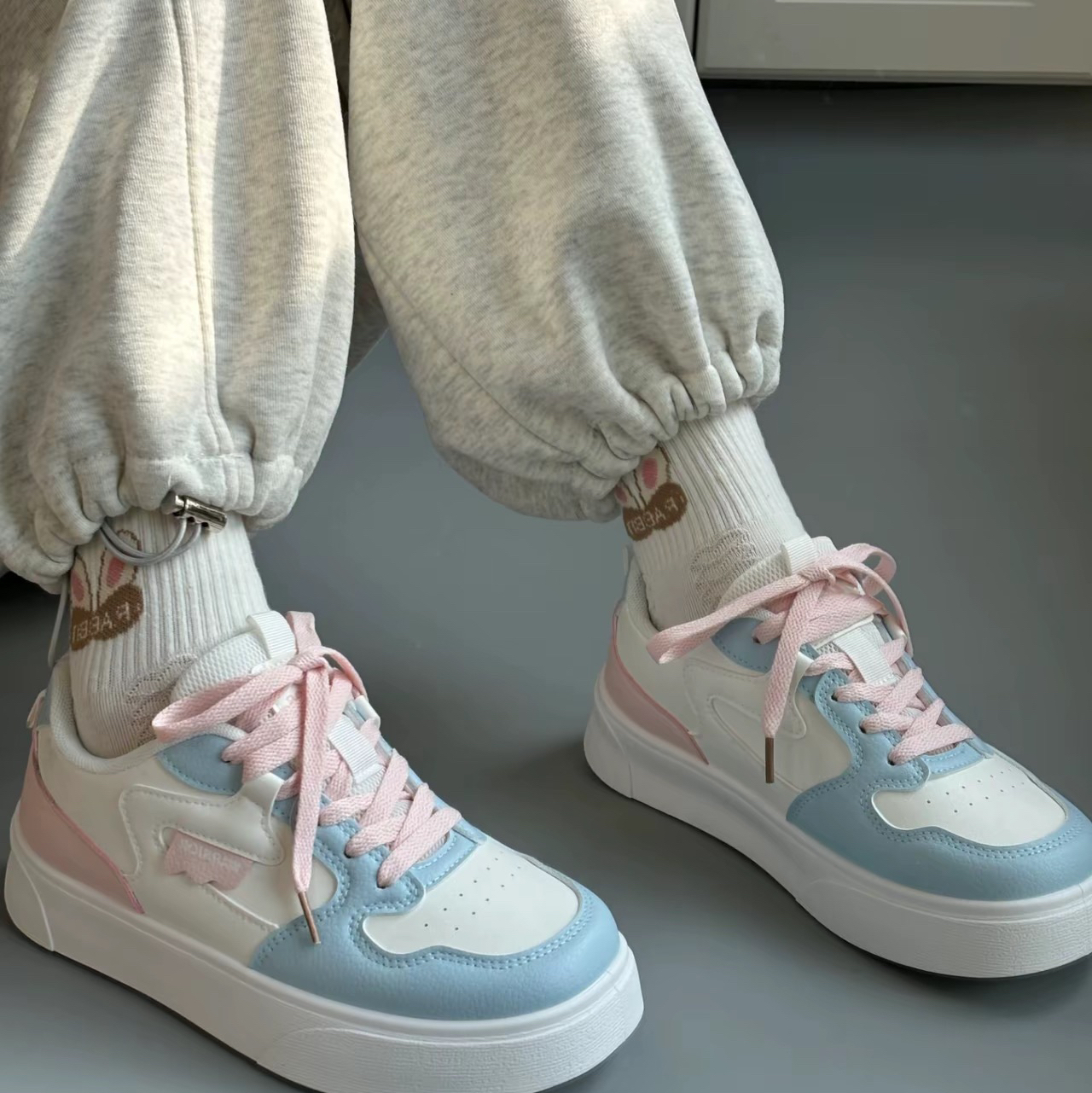 夏天就是小白鞋的季节啊 这款蓝白配色真的复古时髦 还带点法式味道!不得不说朴彩英的眼光就是绝!! 跟着买没问题的!低调耐穿!!鞋星有增高效果 圆圆 的也很可爱。 pS:越穿越宽松诶这个鞋子姐妹们选码子要选好哦