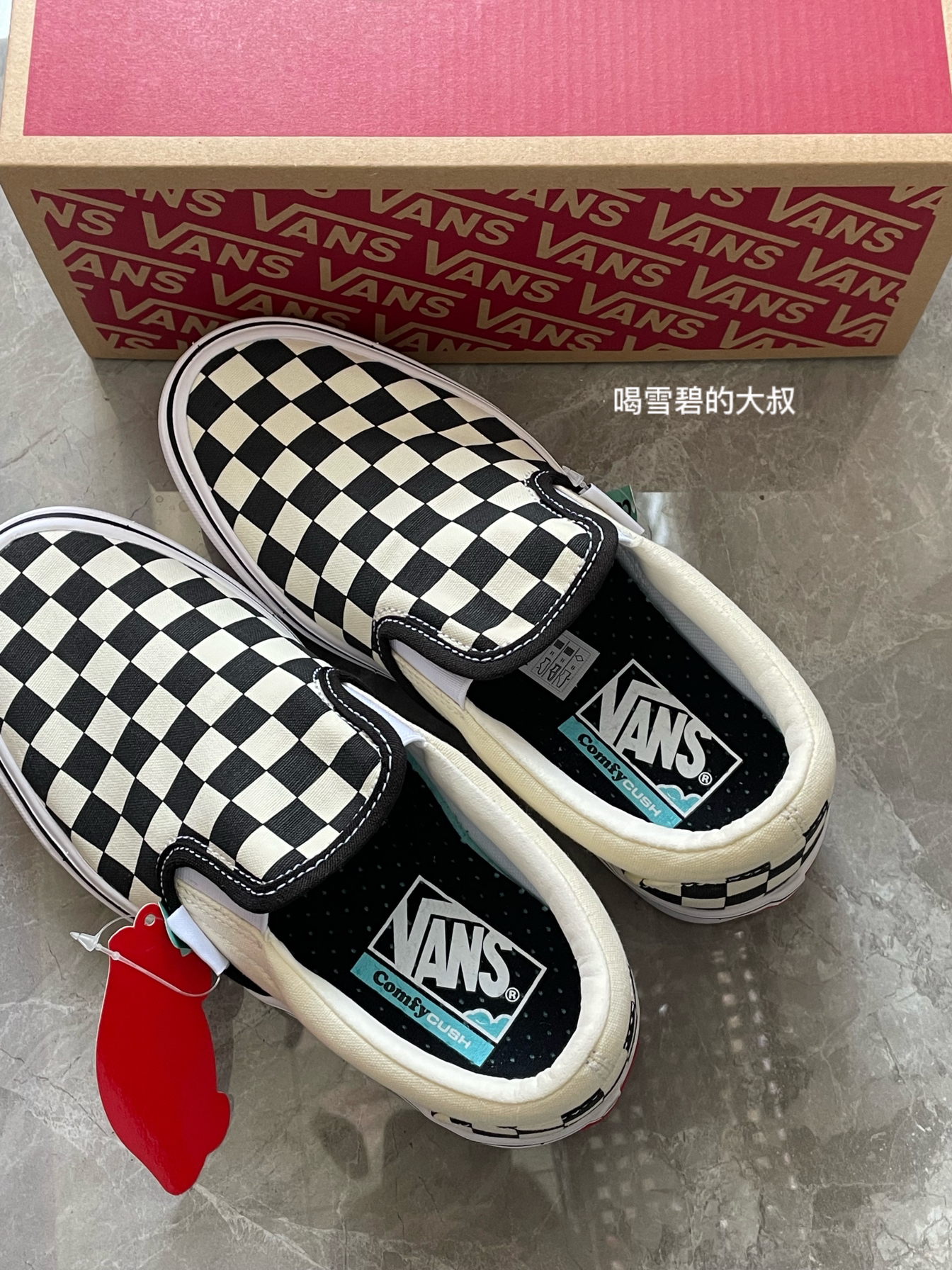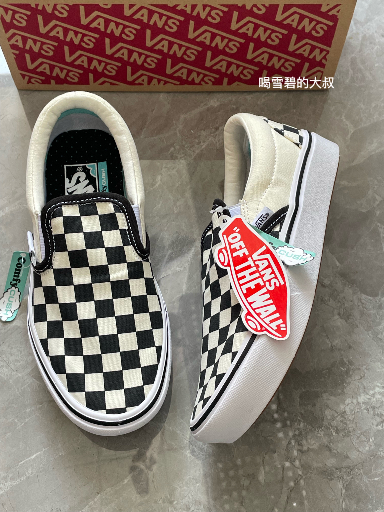 👟:VansComfycushSlip-on超弹懒人一脚蹬休闲板鞋男女同款黑白棋格 夏天出门穿这双鞋,绝对是最佳选择! 鞋子外观配色采用黑白配色,很经典的配色,鞋子全身帆布材质,透气性极佳,鞋子采用一脚蹬设计,穿着很洋气,绝对的高颜值百搭好鞋! 至于鞋子搭配方面来说,非常百搭,无论搭配什么衣服都可以轻松驾驭,鞋底采用橡胶材质,非常耐穿耐磨! 不得不说,这鞋子销量是真的好,真的相当受欢迎!